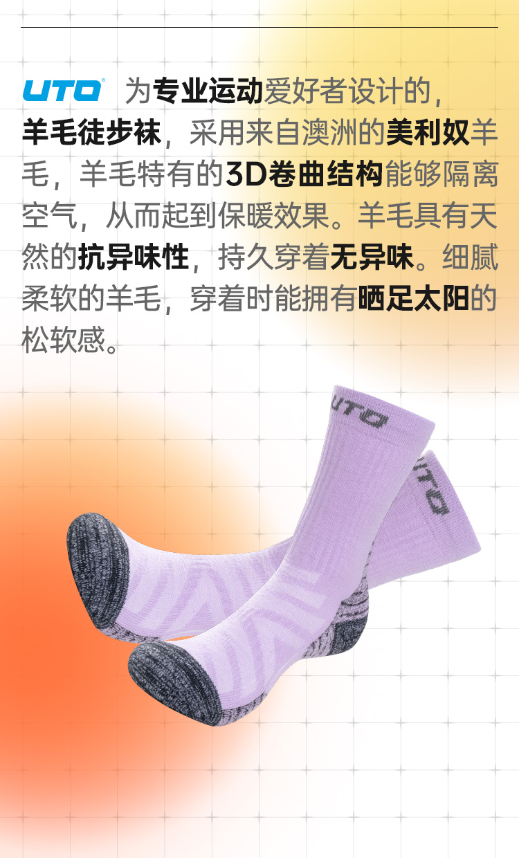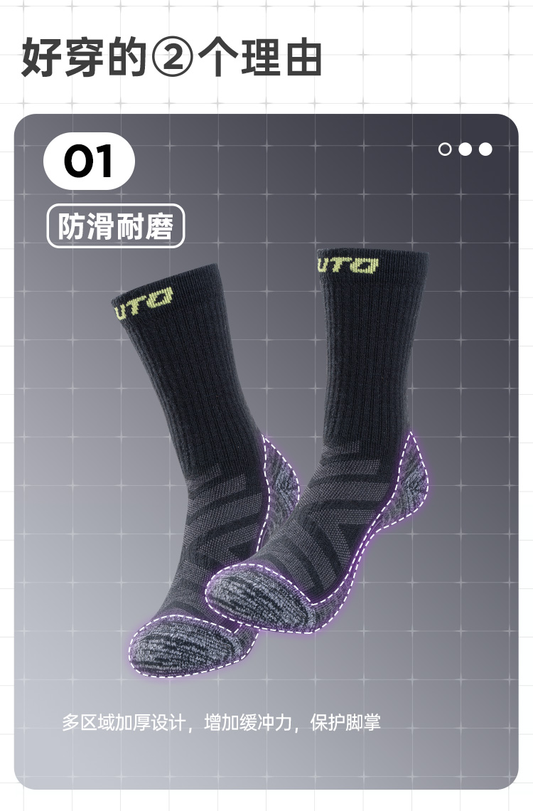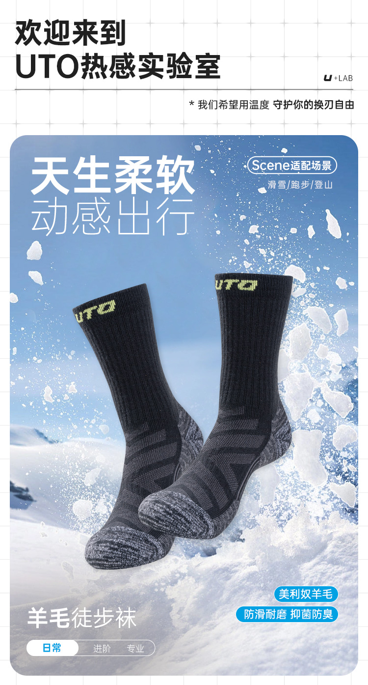 UTO/悠途羊毛户外滑雪徒步中筒袜子秋冬加厚保暖防滑耐磨吸汗男女