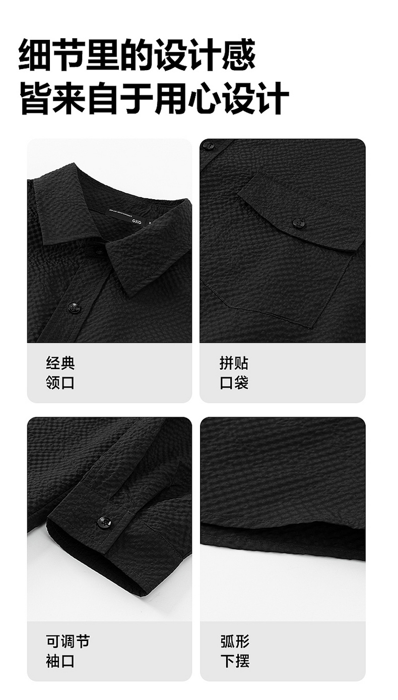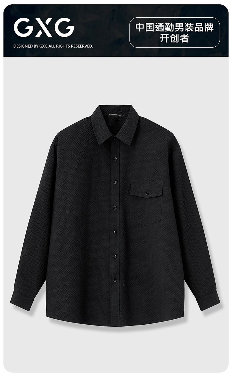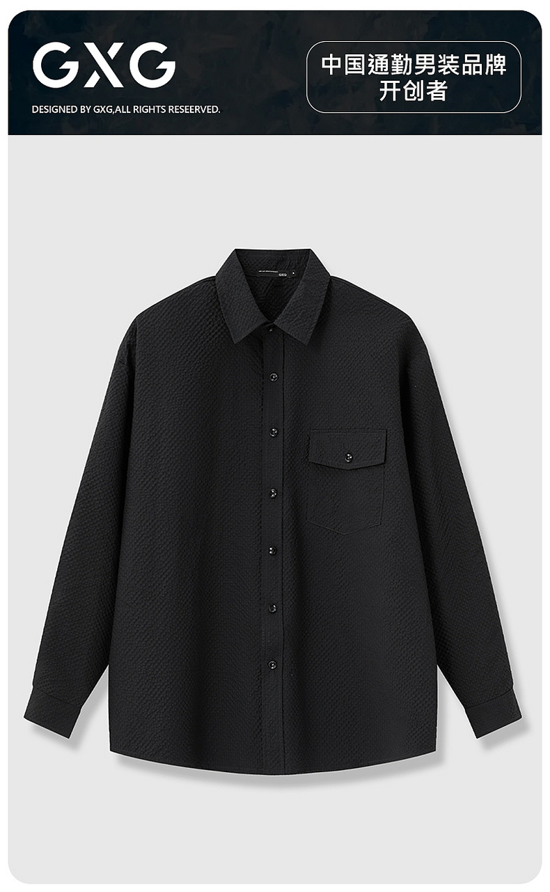 GXG男装【泡芙格】25秋季时尚休闲日常通勤简约百搭男式长袖衬衫K&C