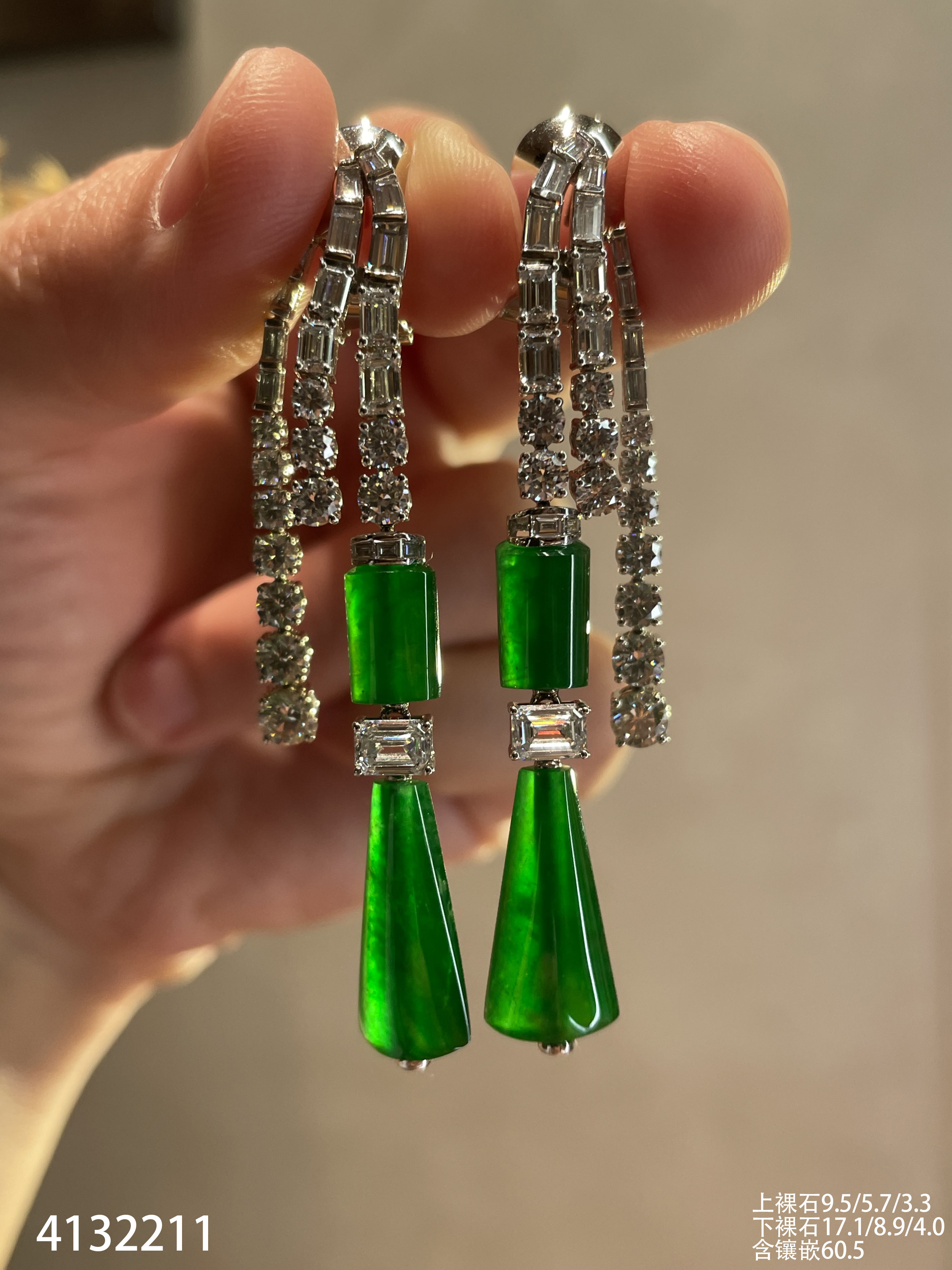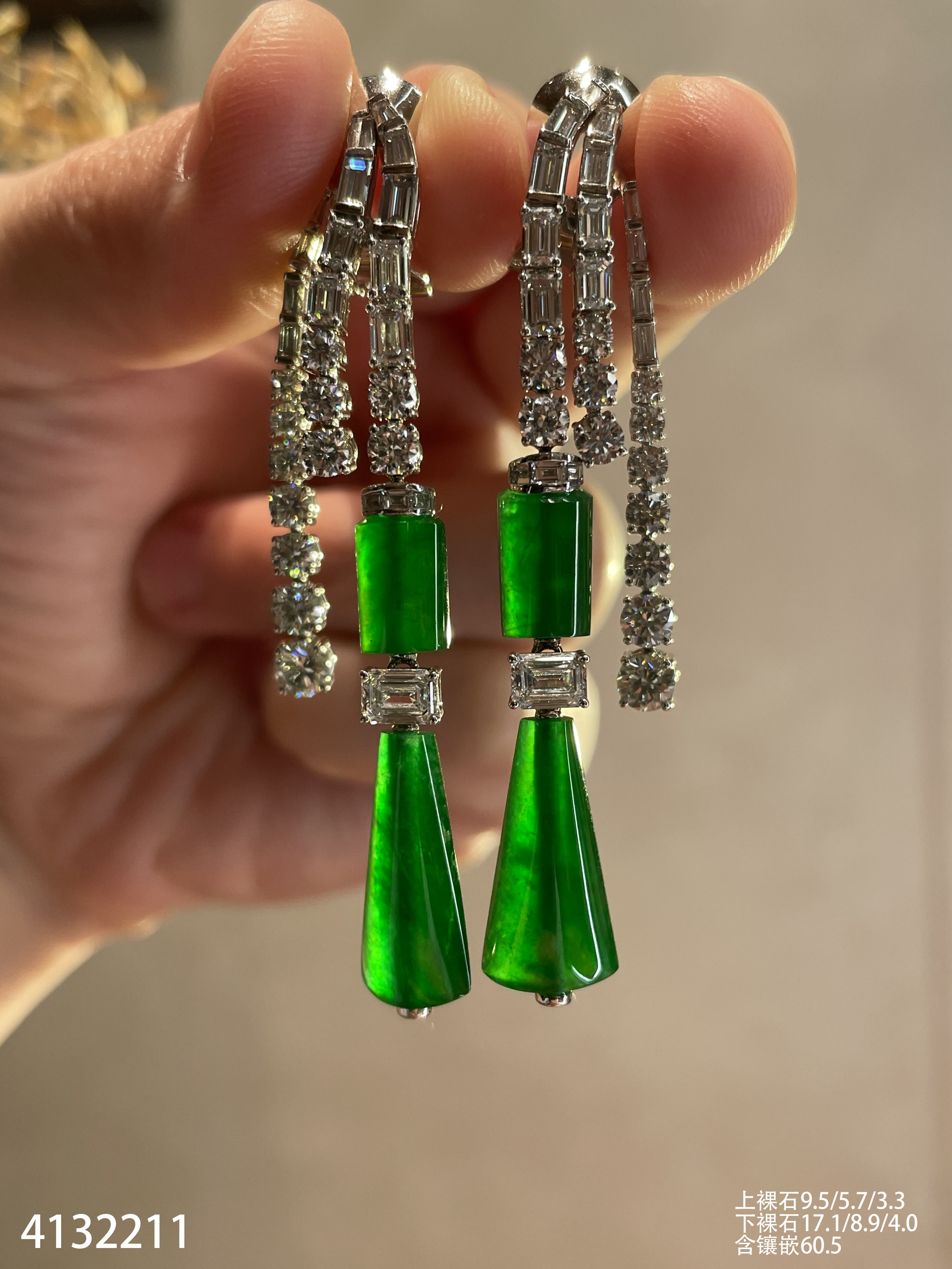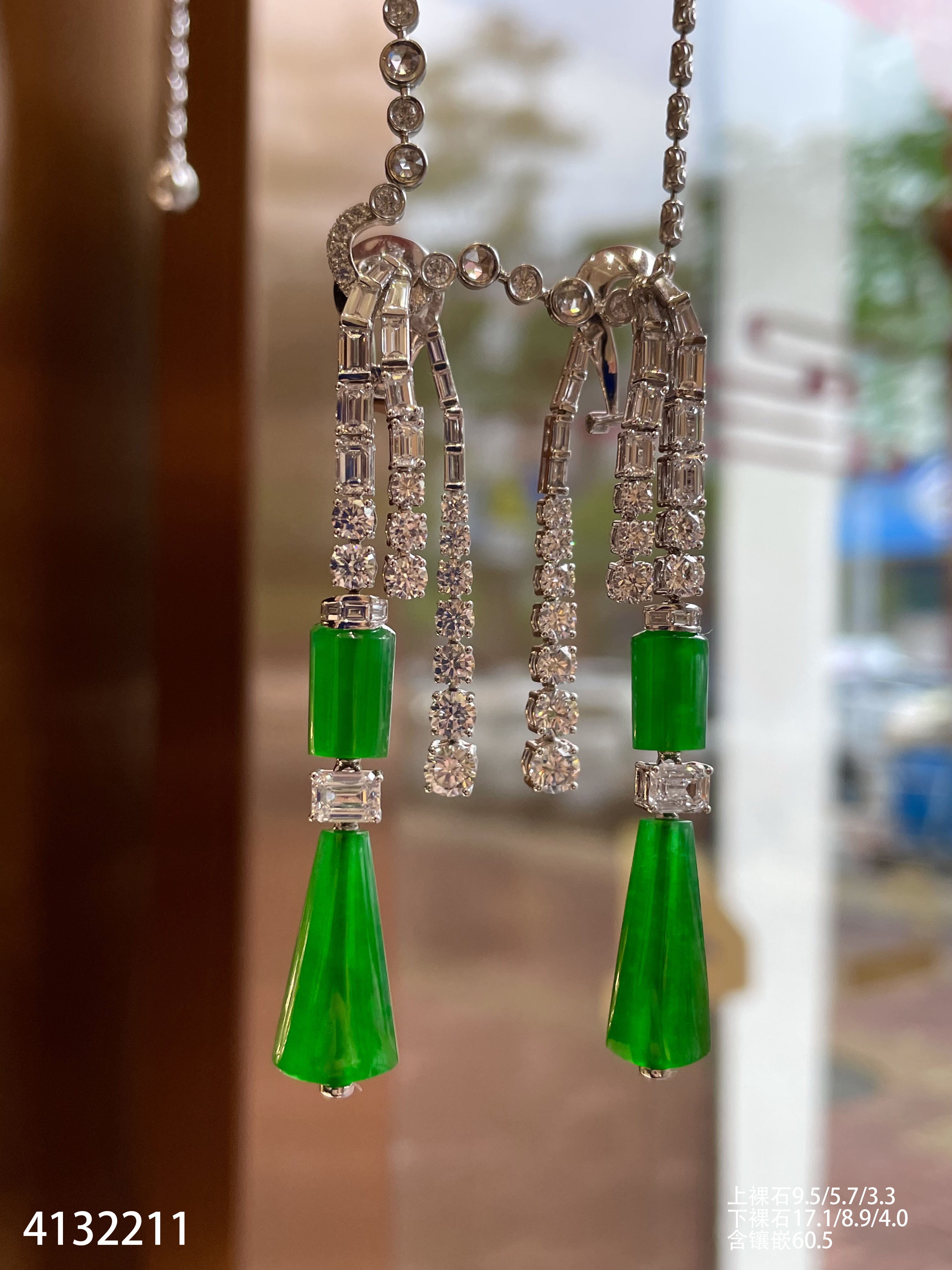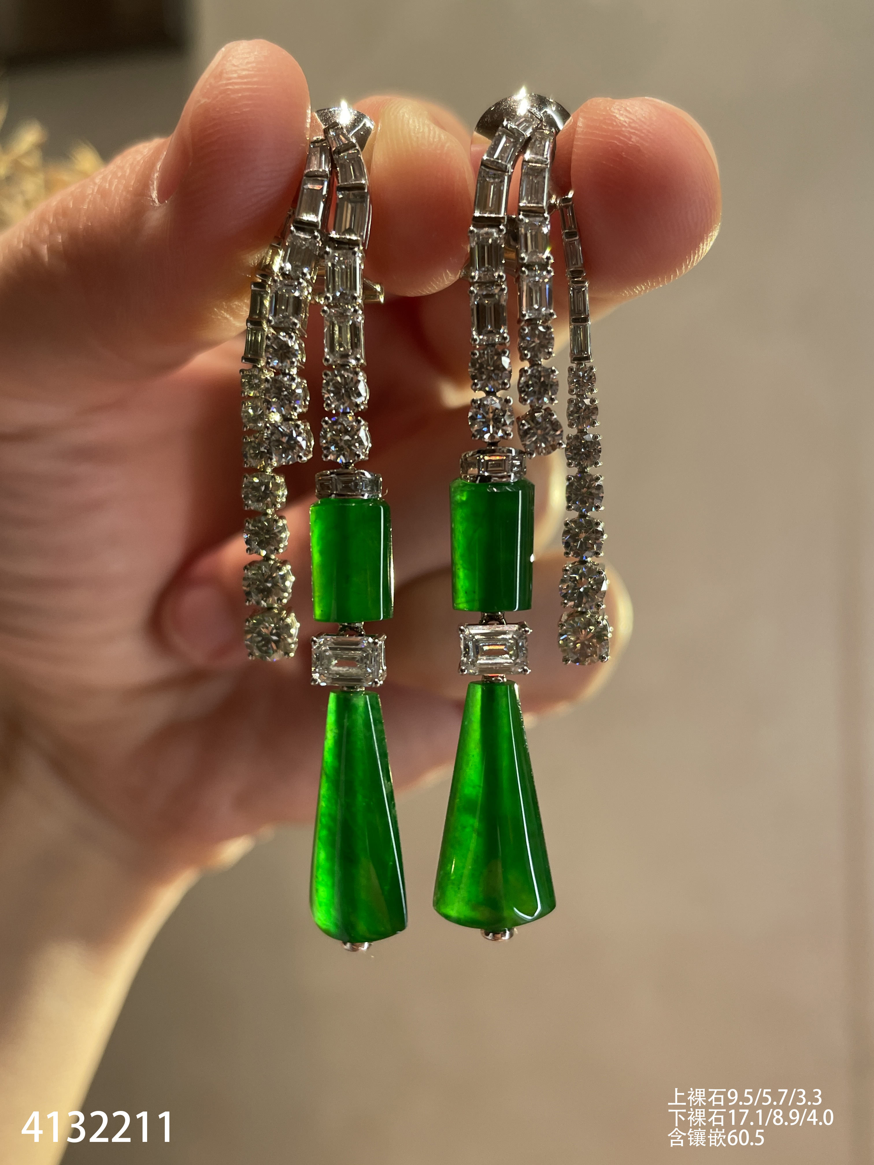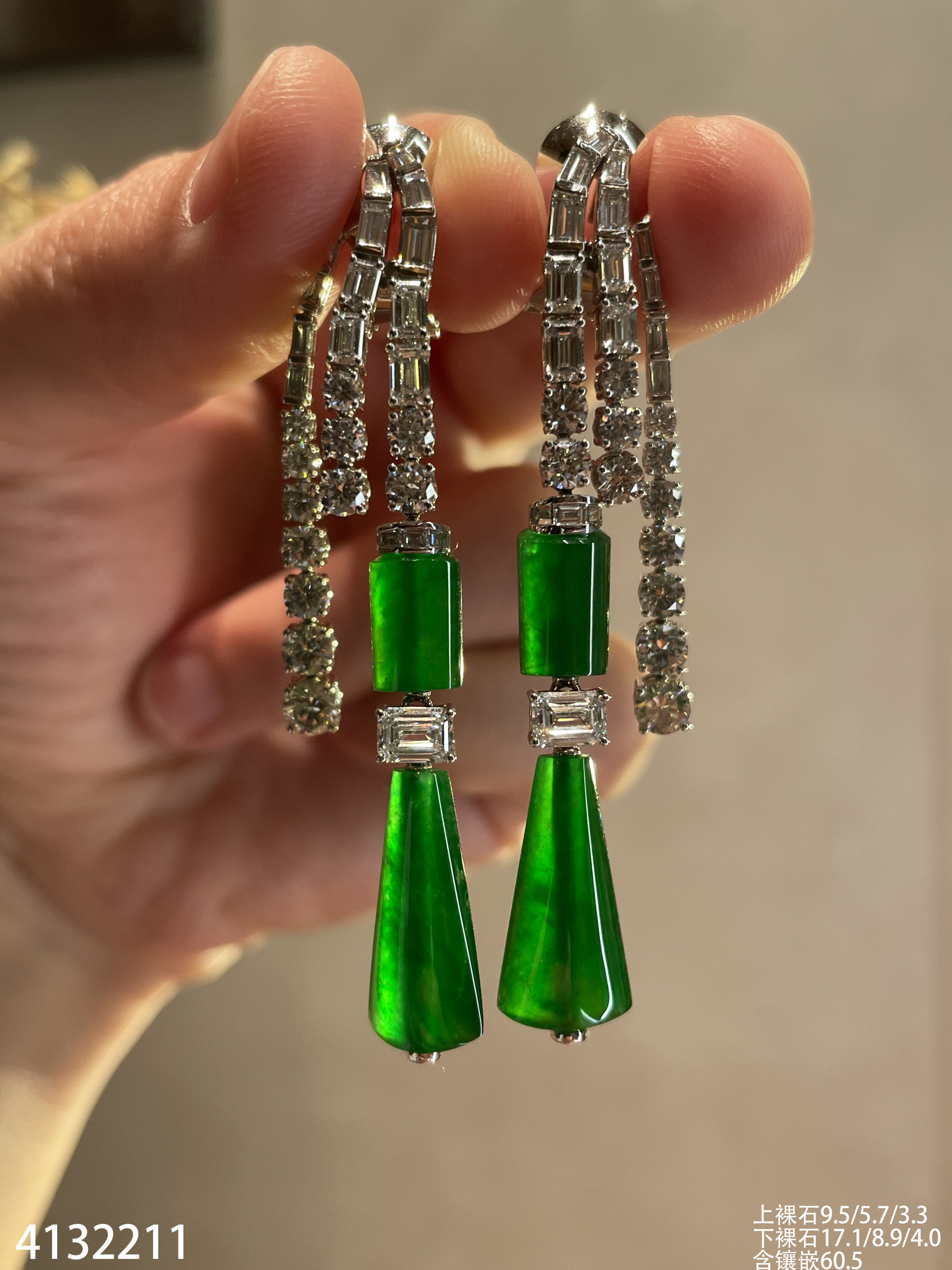 老坑帝王绿灯管耳坠【4132211】具体价格微信咨询