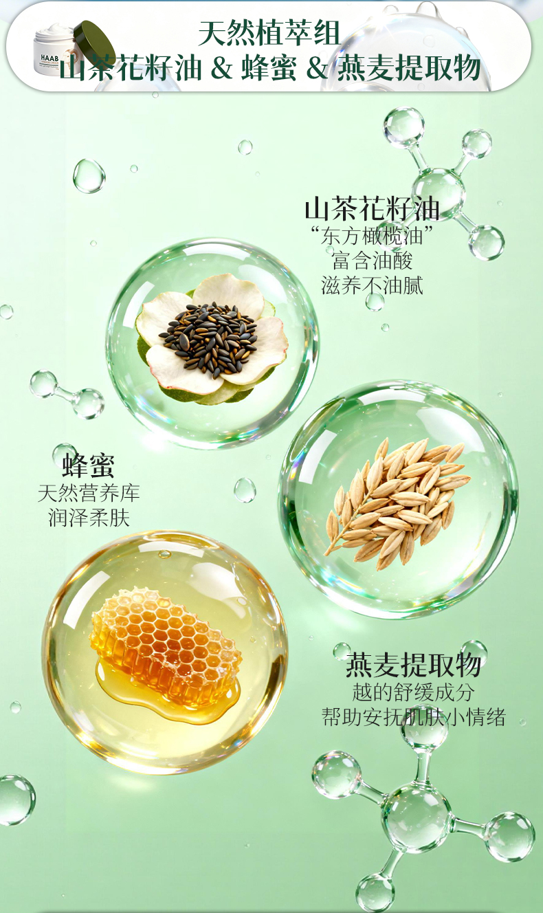【天然舒缓植萃】燕麦提取物 & 蜂蜜 & 山茶花籽油