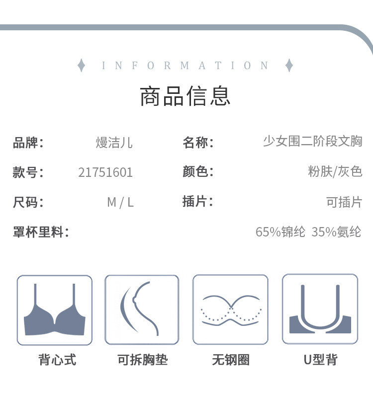 【L码】熳洁儿 二阶段自然无痕儿童少女文胸发育期女童内衣学生背心21751601
