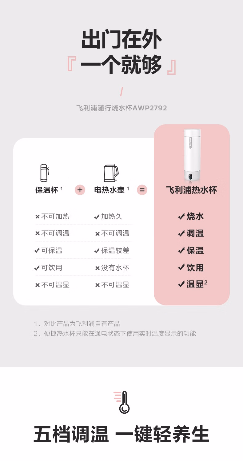 飞利浦便捷电热烧水杯400ML