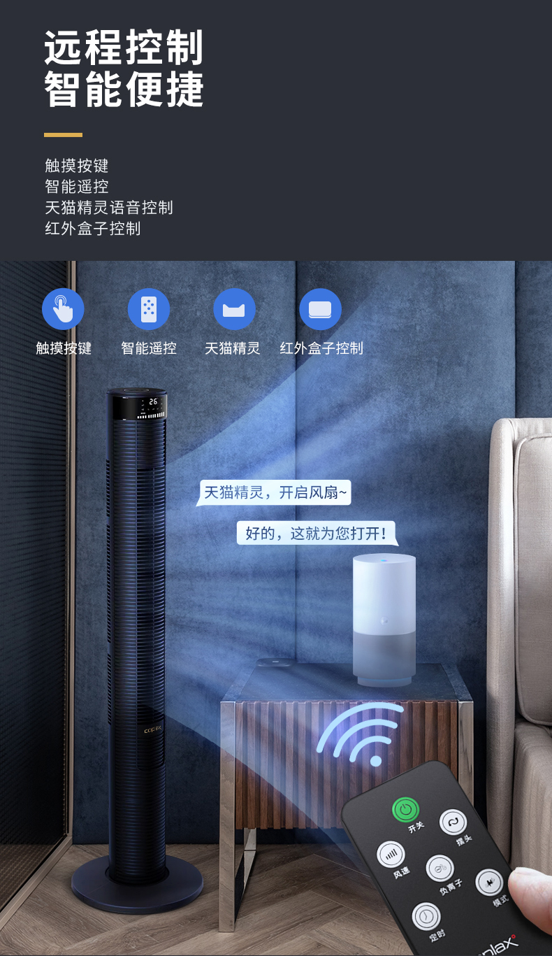 瑞士Coplax电风扇家用无扇叶落地扇静台式立式电扇塔扇卧室音智能