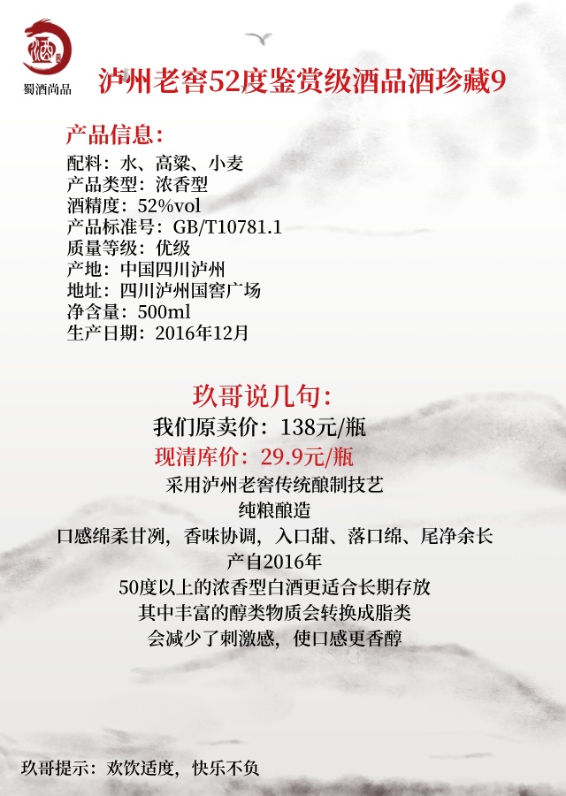 52度泸州鉴赏级酒品酒珍藏9 500m