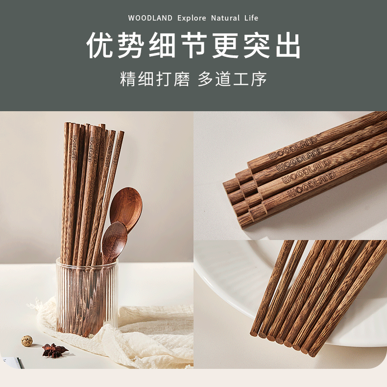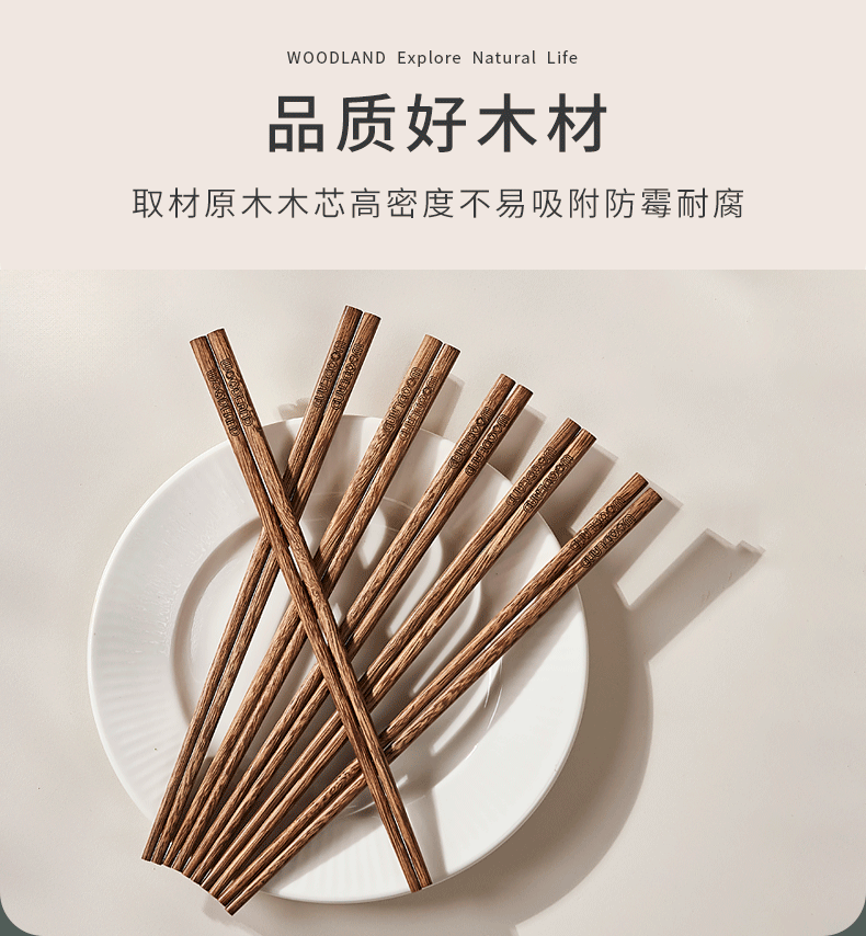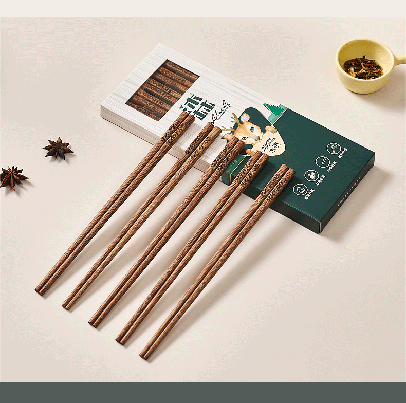 沐林 鸡翅木筷5双 家用 高档 新款 防霉 防滑 木质 耐高温 长筷子 筷子 包邮 新老包装随机发货