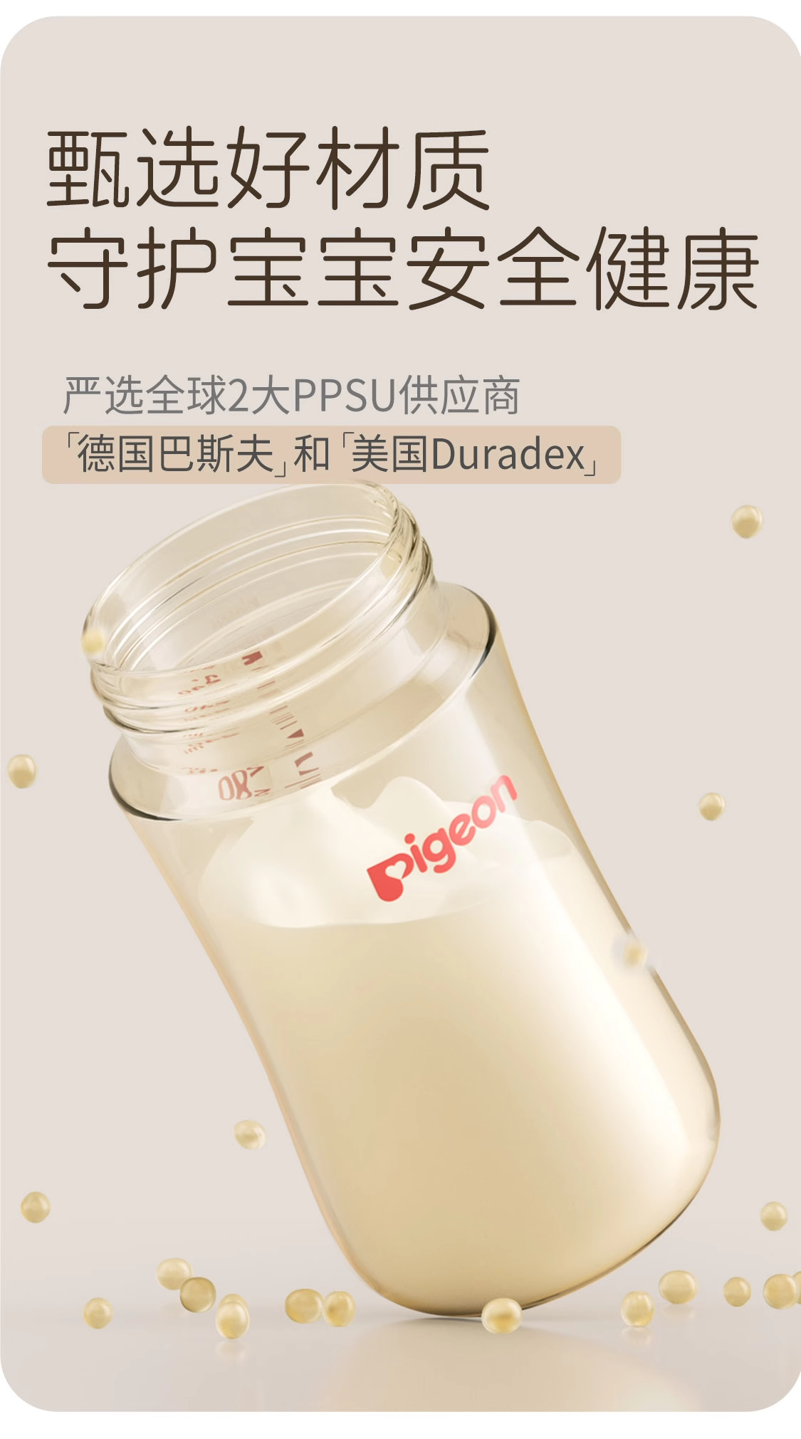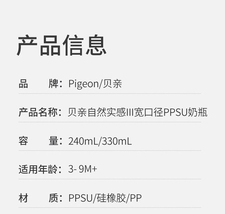 贝亲新生婴儿宽口径PPSU双把手奶瓶240ML/330ML(M/LL奶嘴)/PIG-AA270-AA271