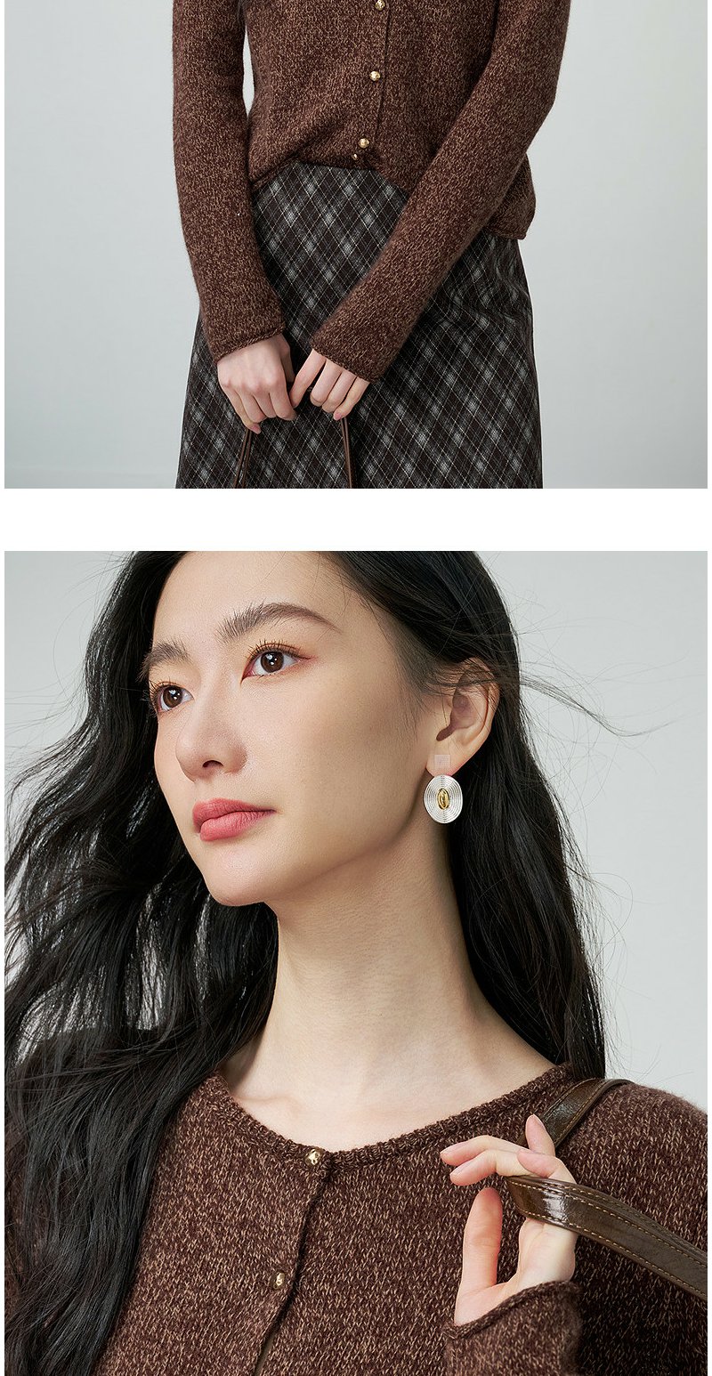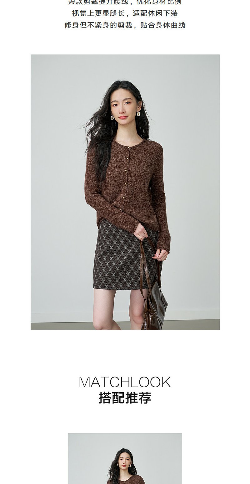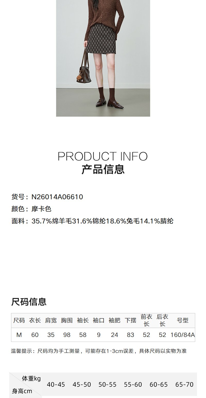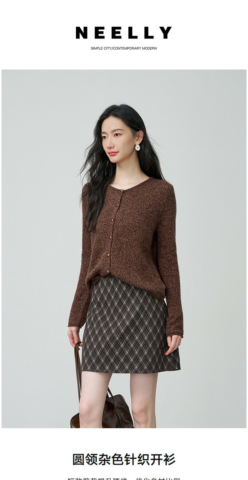 NEELLY纳俪商场同款春季新款时尚圆领杂色针织开衫女休闲通勤上衣N26014A06610