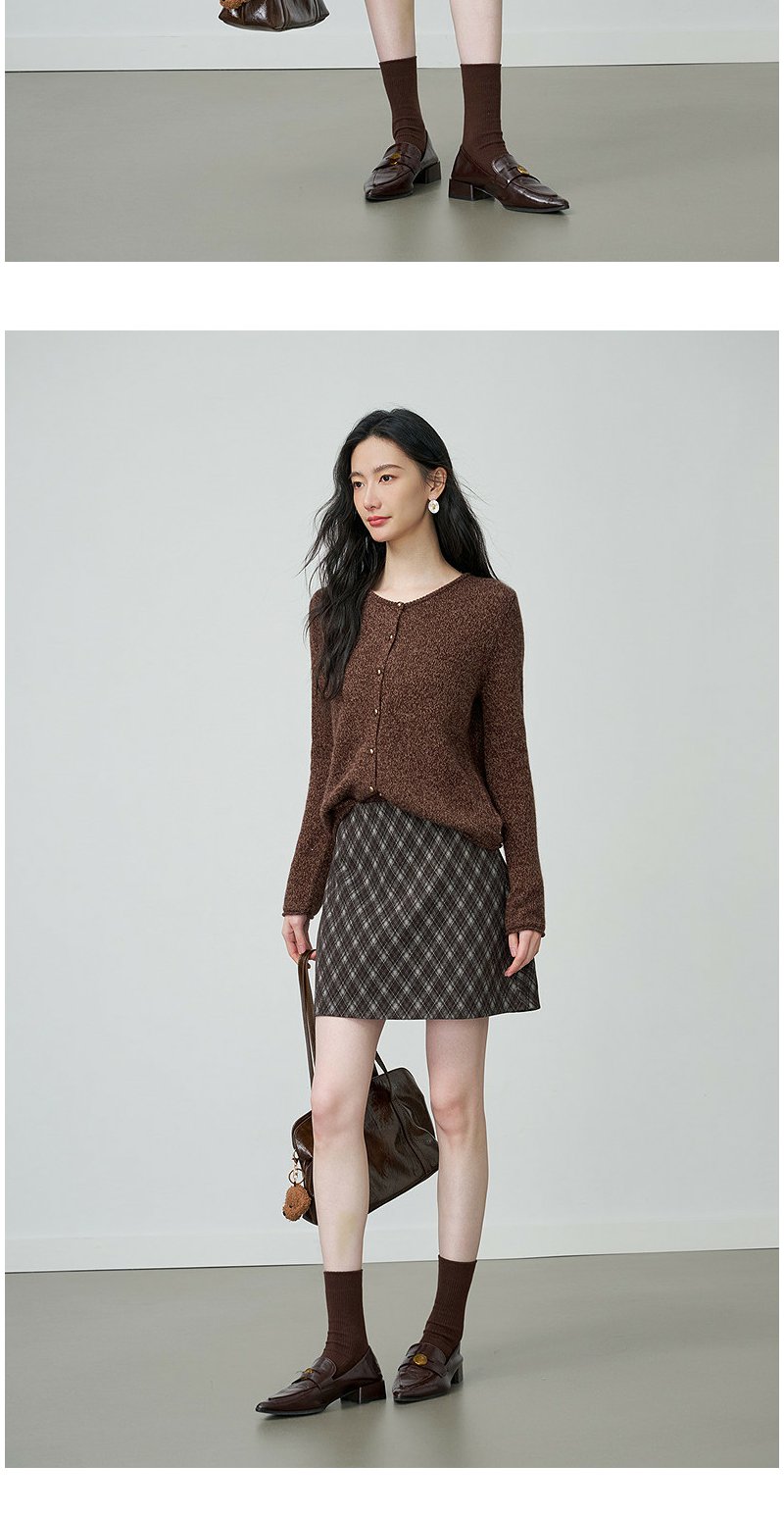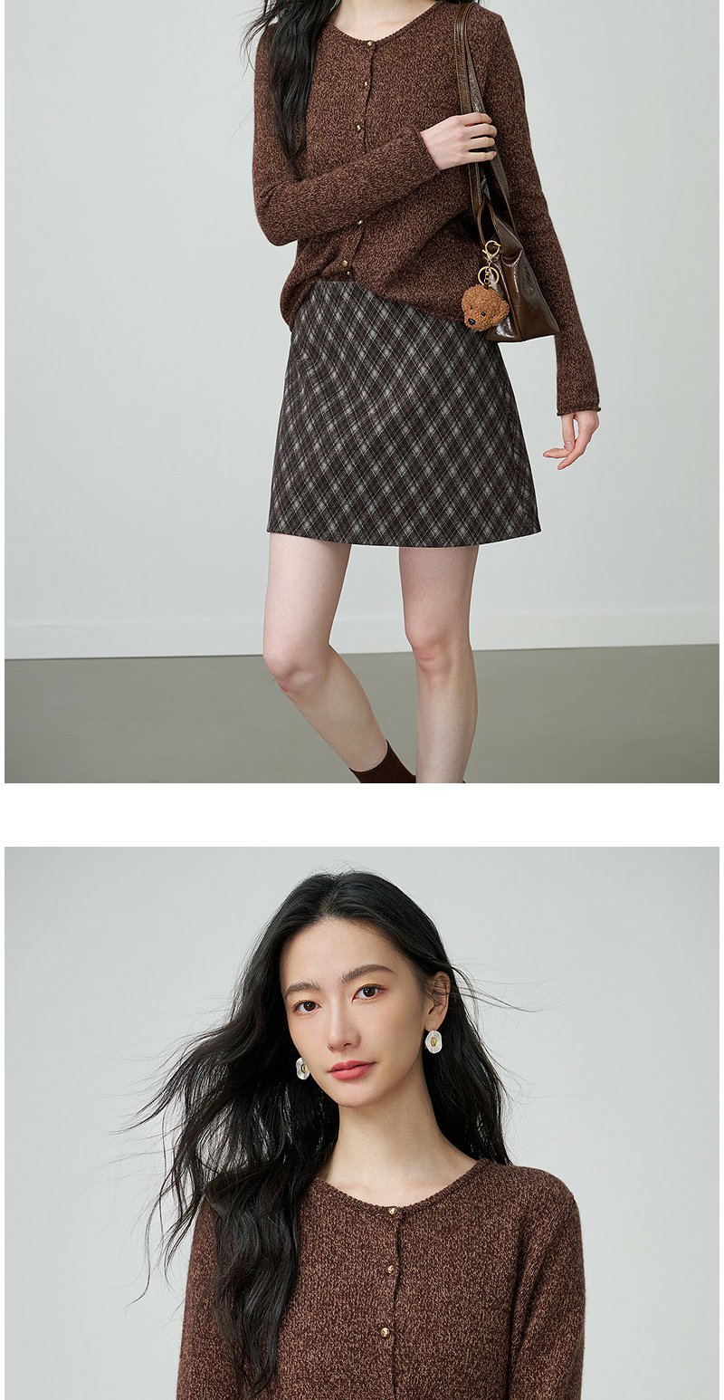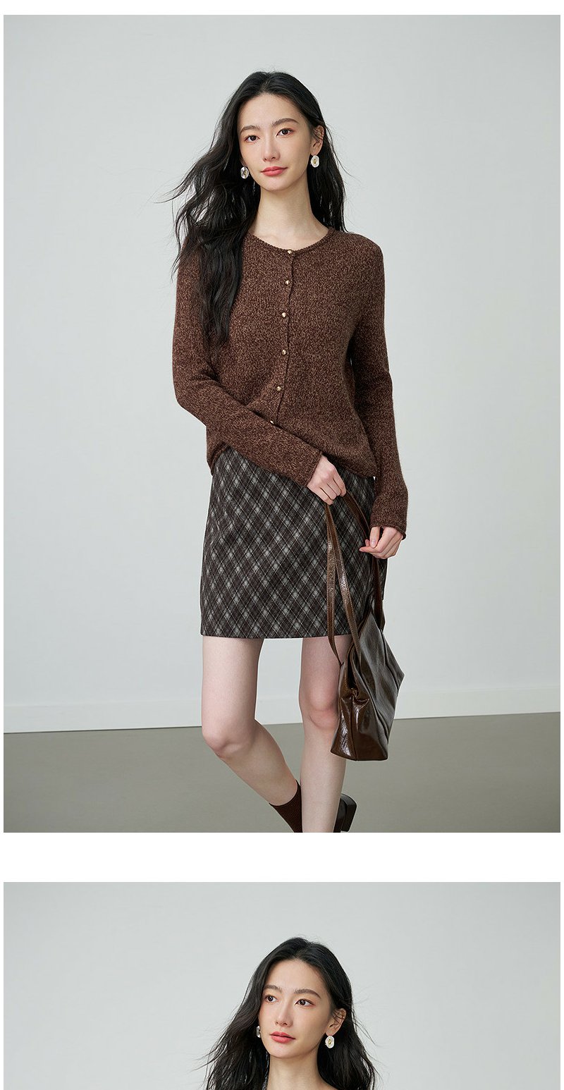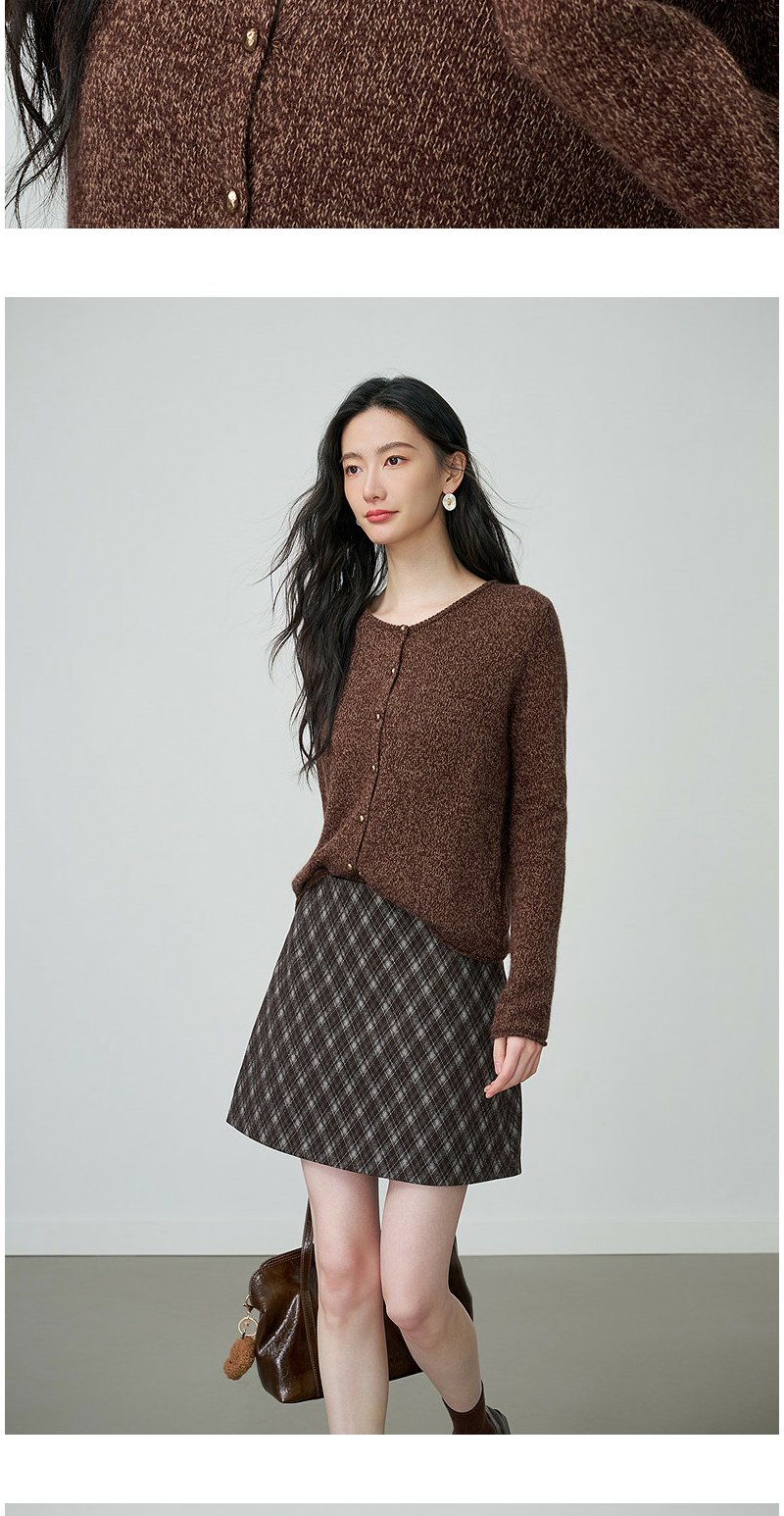 NEELLY纳俪商场同款春季新款时尚圆领杂色针织开衫女休闲通勤上衣N26014A06610