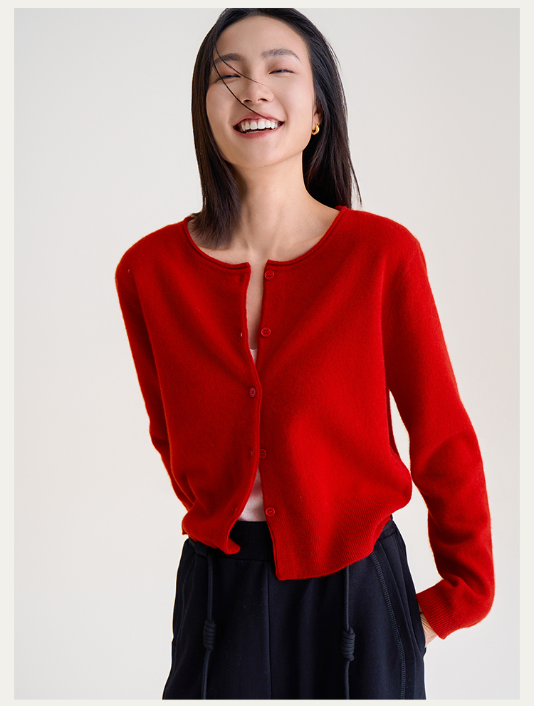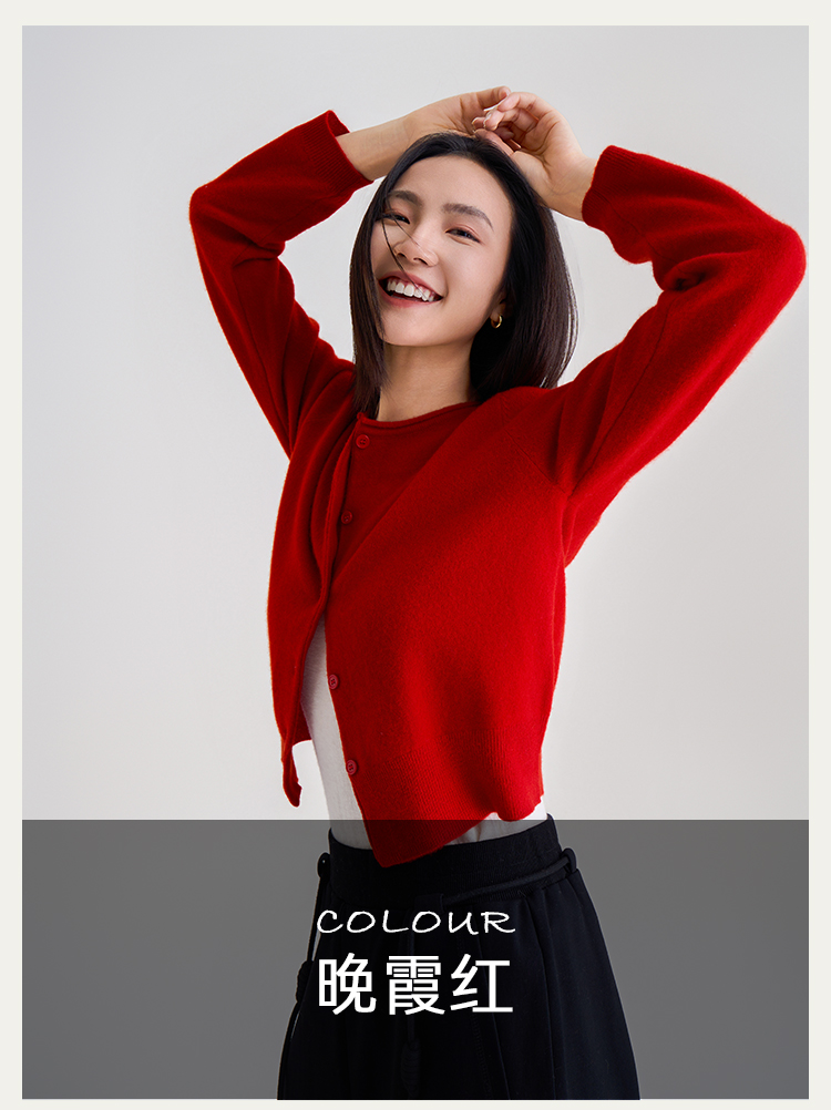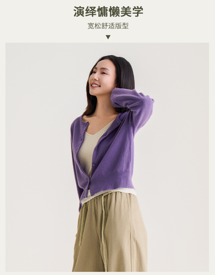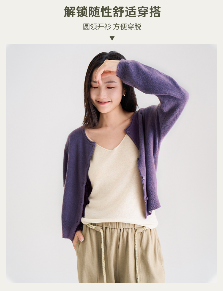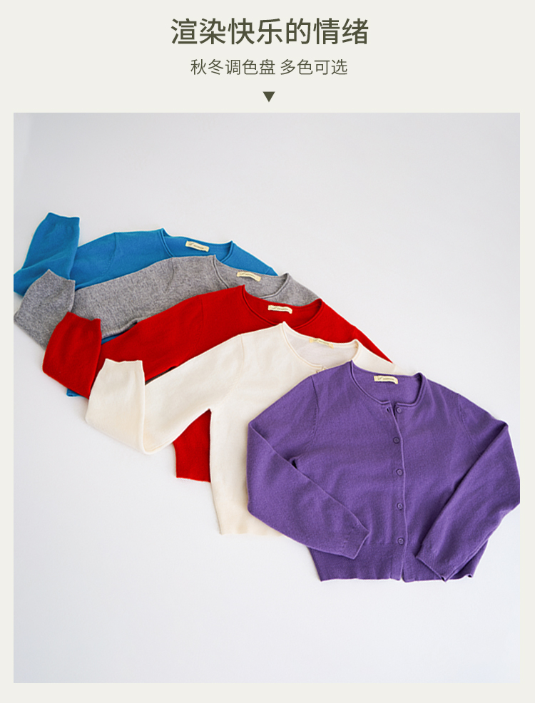 【100%羊毛】秋冬调色盘开衫 圆领纽扣宽边毛衣 短款羊绒外套