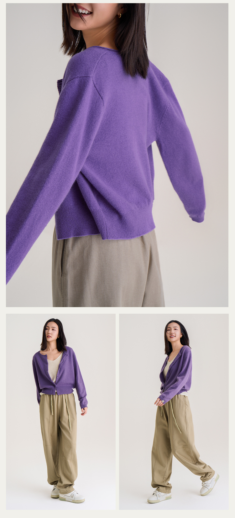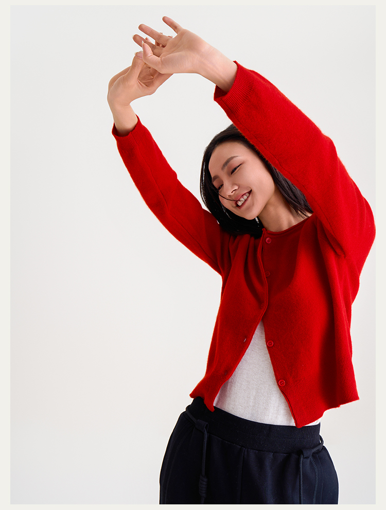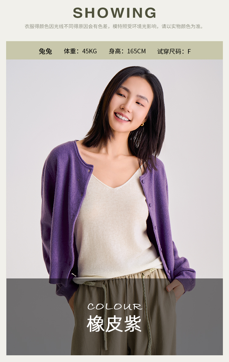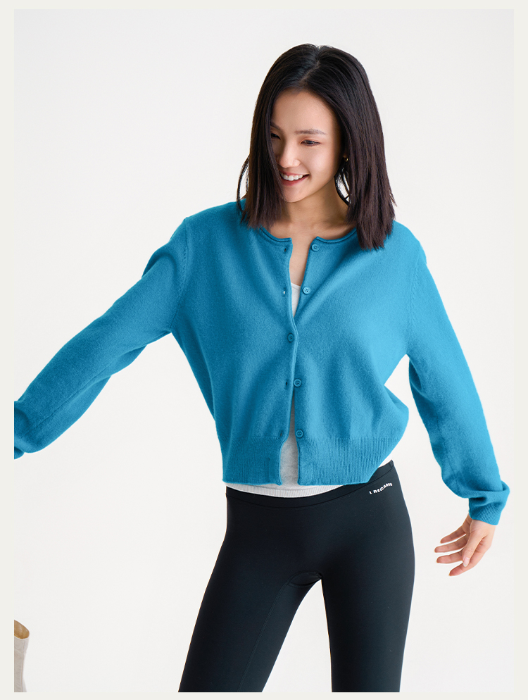 【100%羊毛】秋冬调色盘开衫 圆领纽扣宽边毛衣 短款羊绒外套