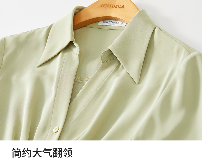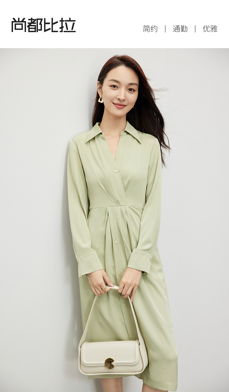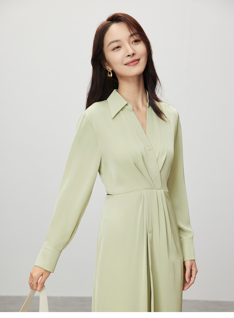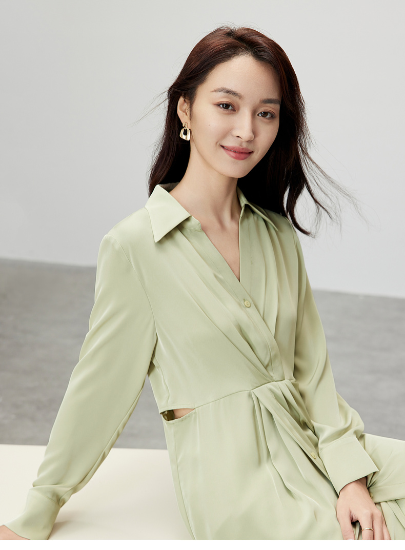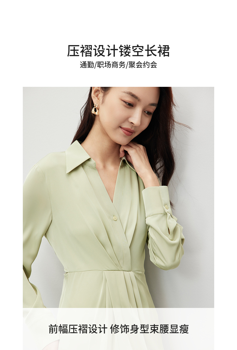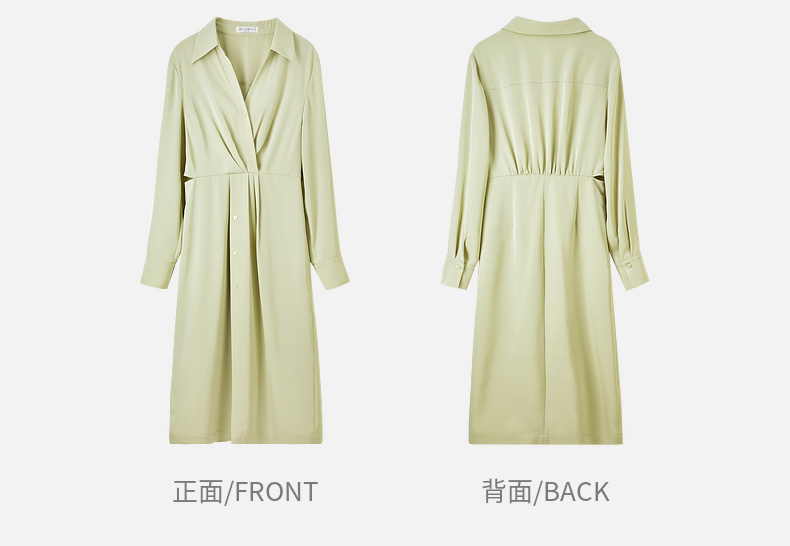 【内购】【压褶设计镂空连衣裙】通勤翻领前身压褶设计腰部镂空收腰连衣裙-151L80081X