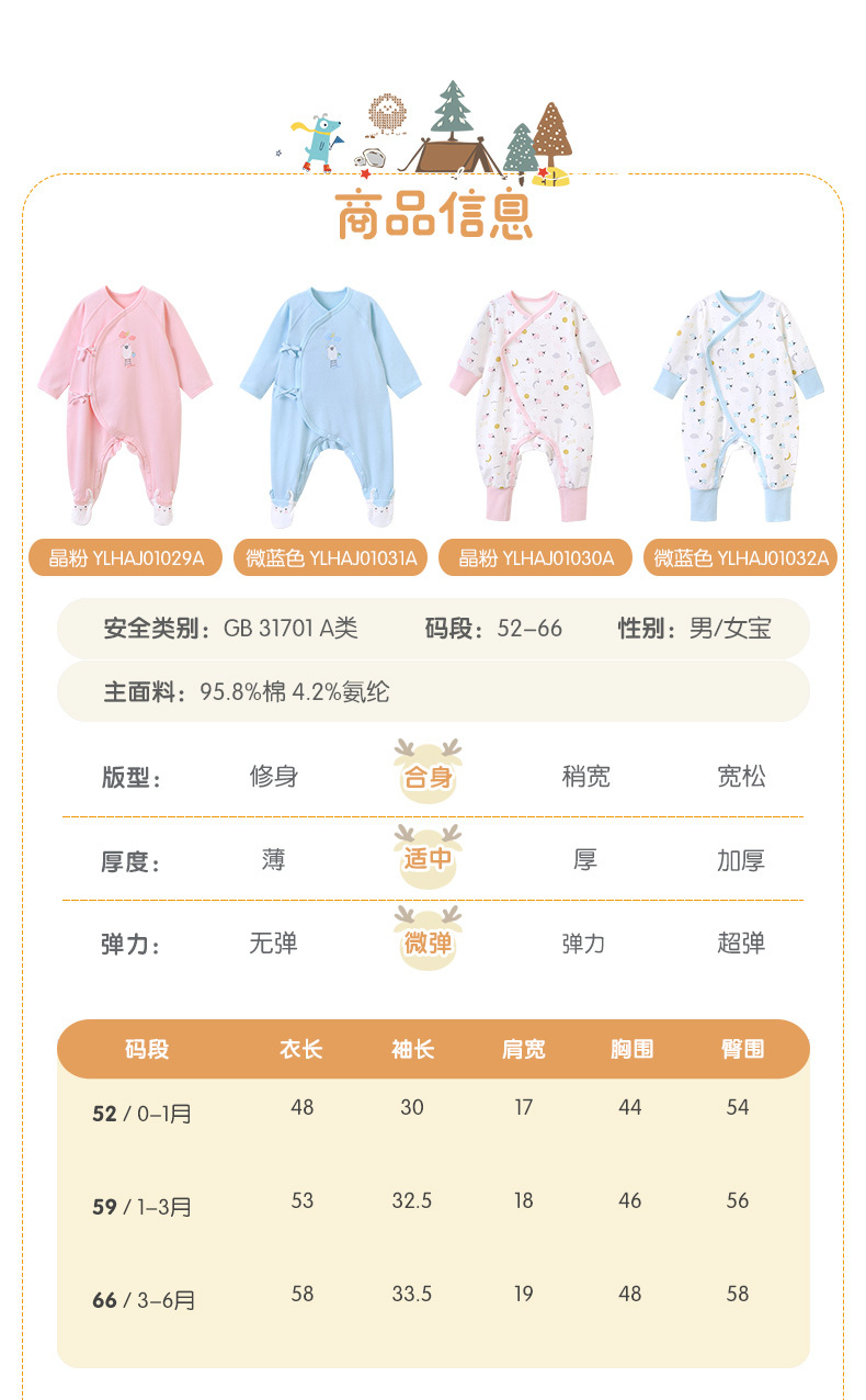 英氏婴儿连体衣宝宝四季居家包脚哈爬服YLHAJ01029A YLHAJ01031A