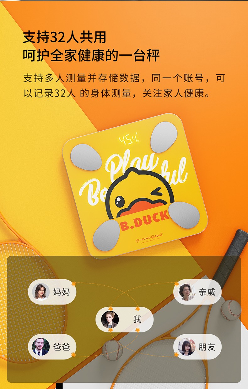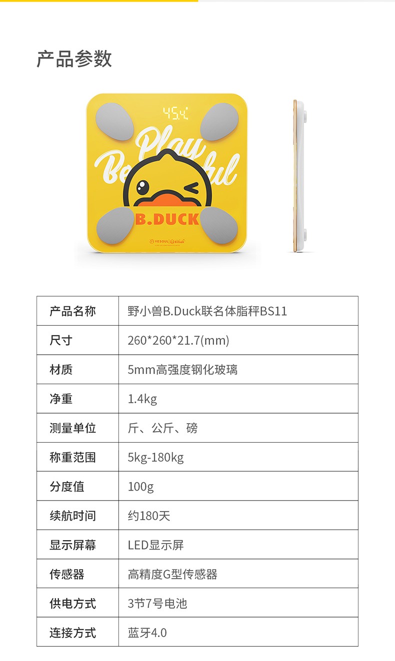YESOUL野小兽小黄鸭版联名体脂称智能电子秤