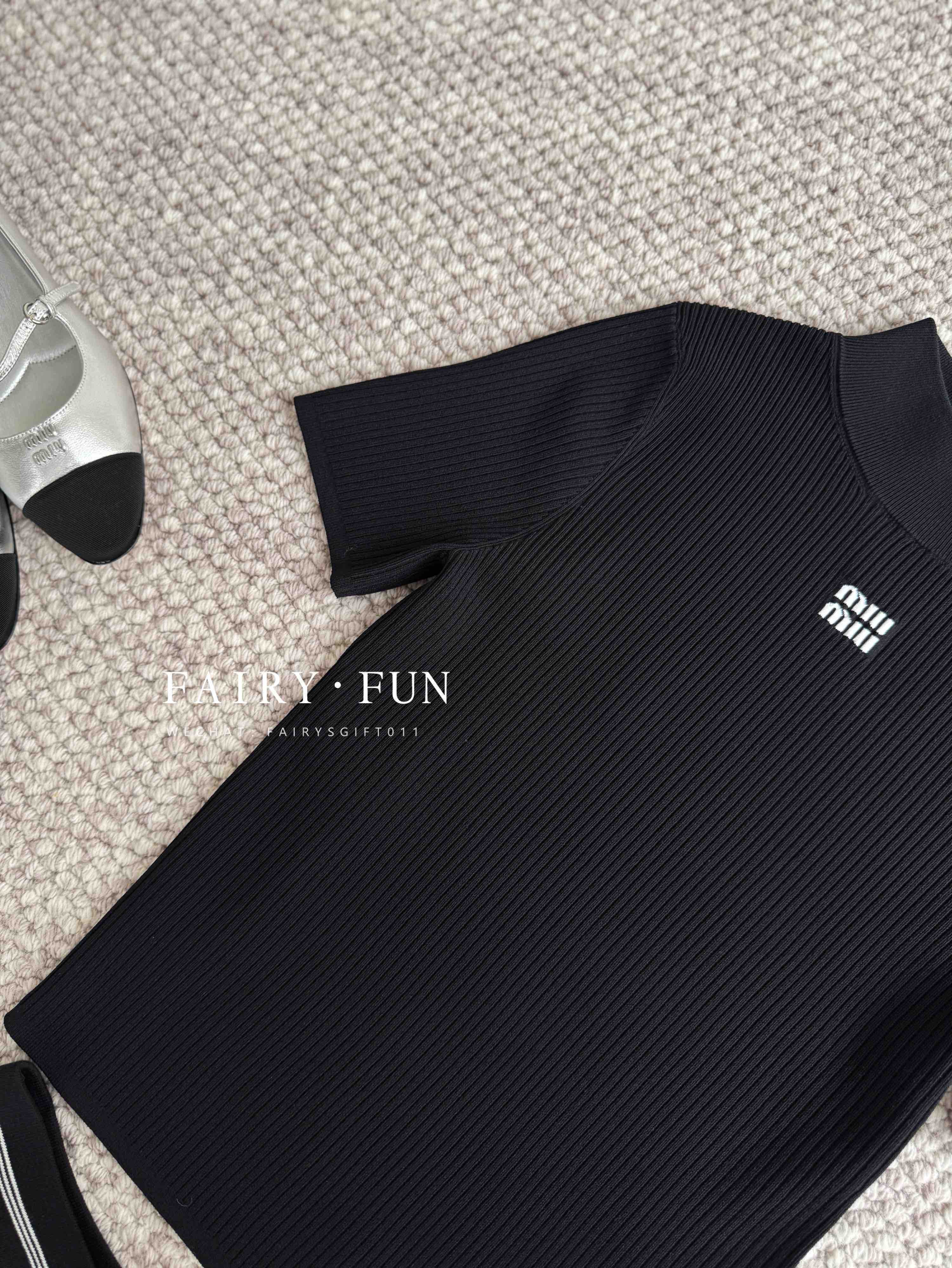 MIU-S 花边镂空针织短袖