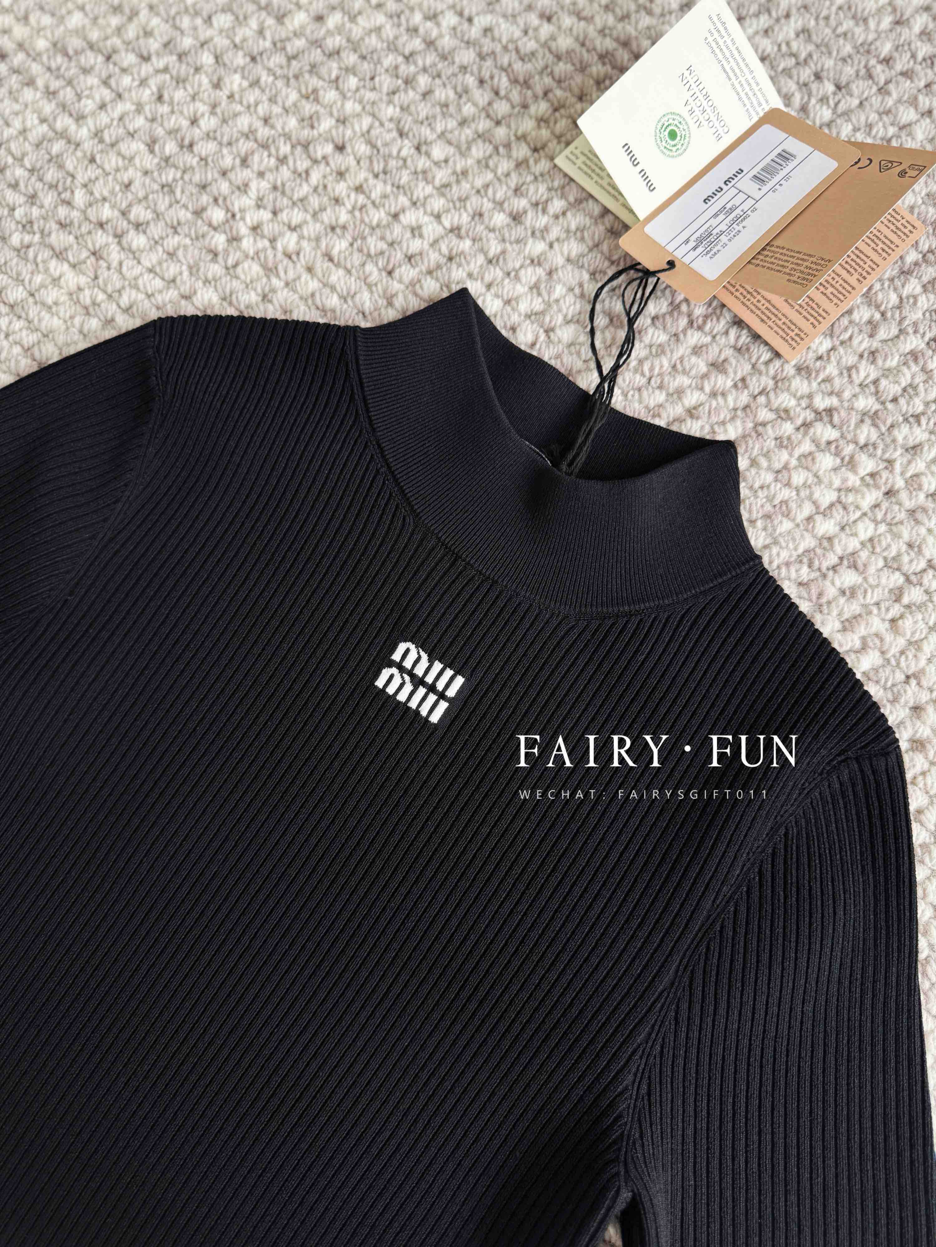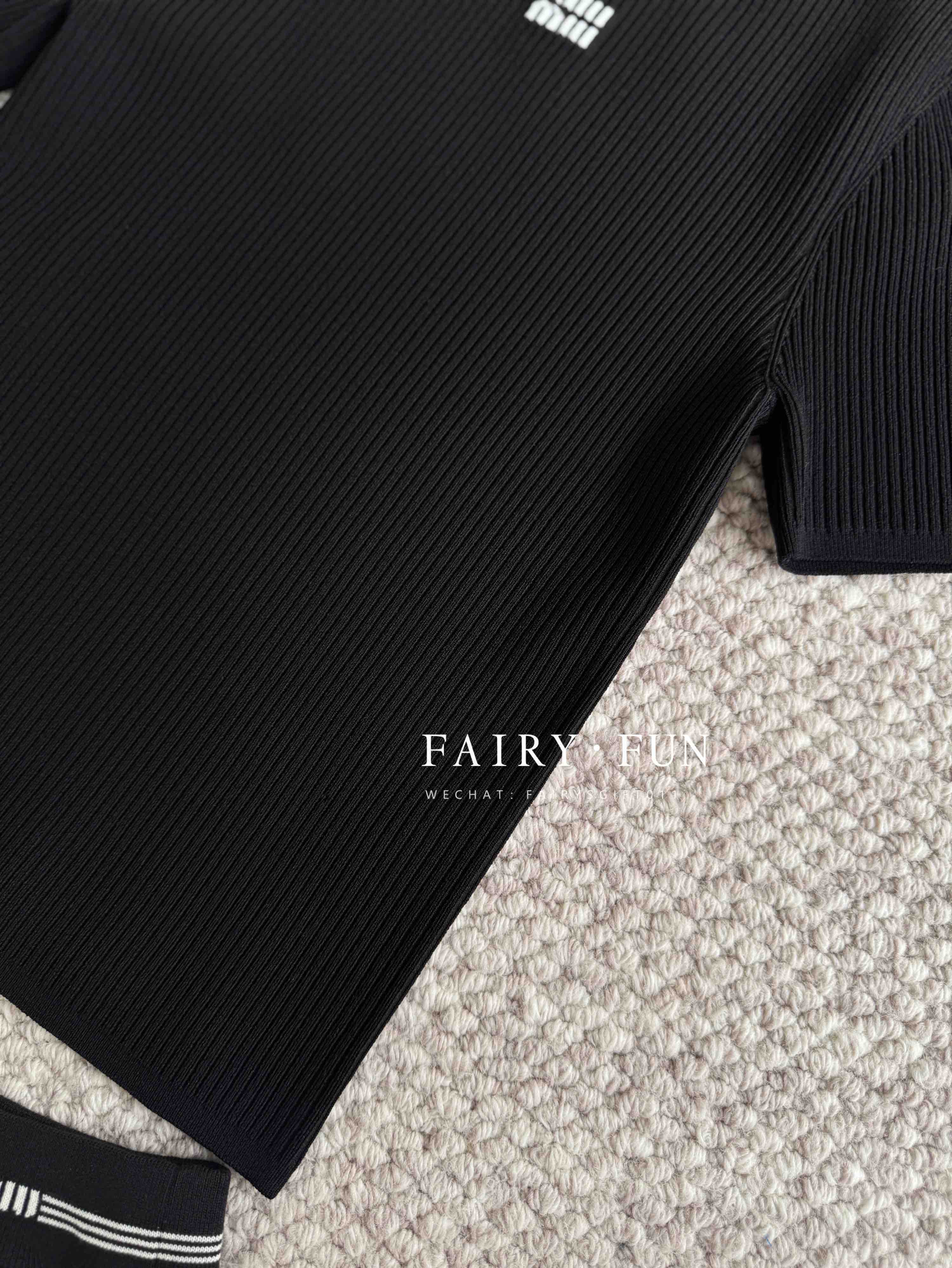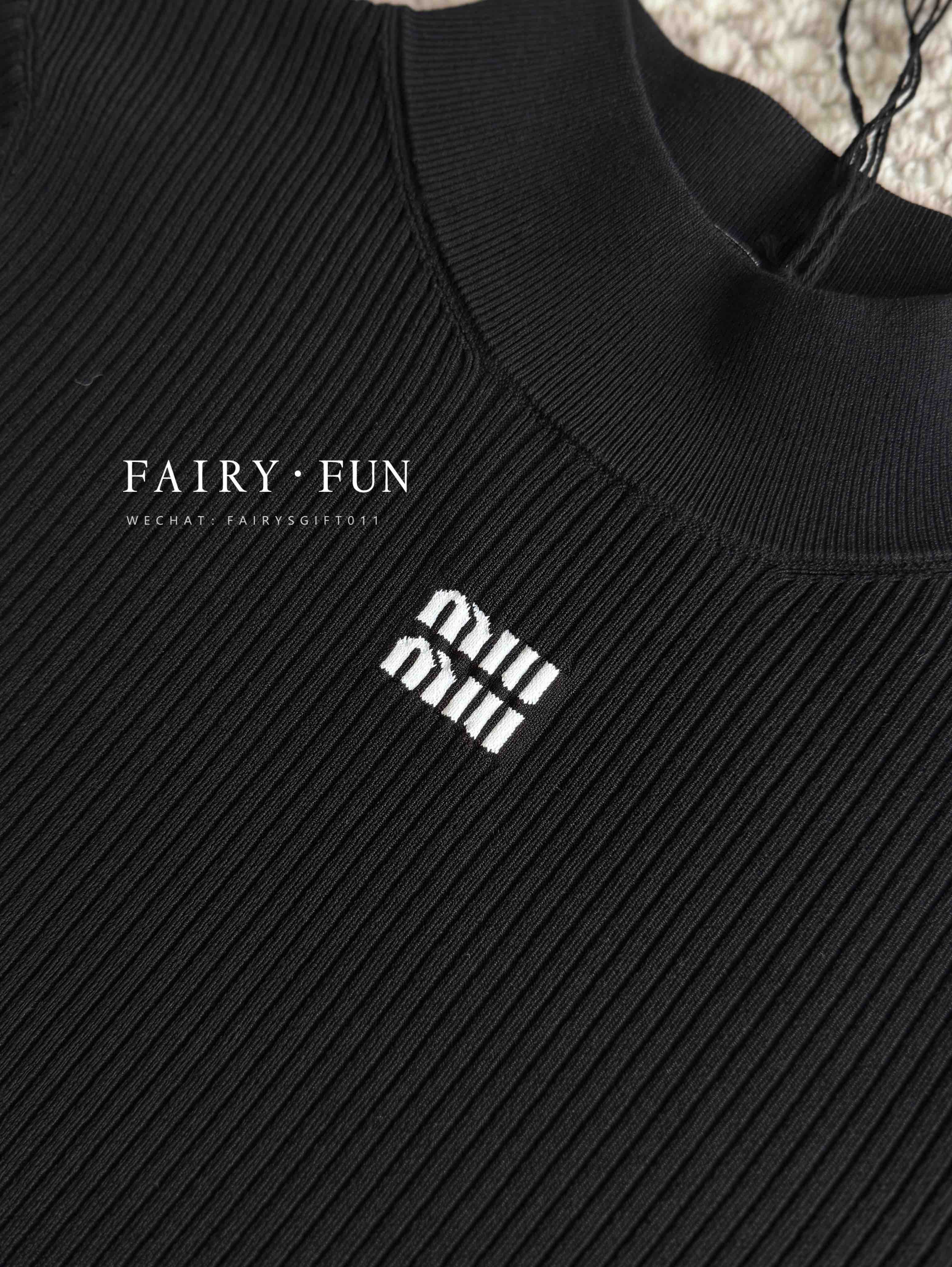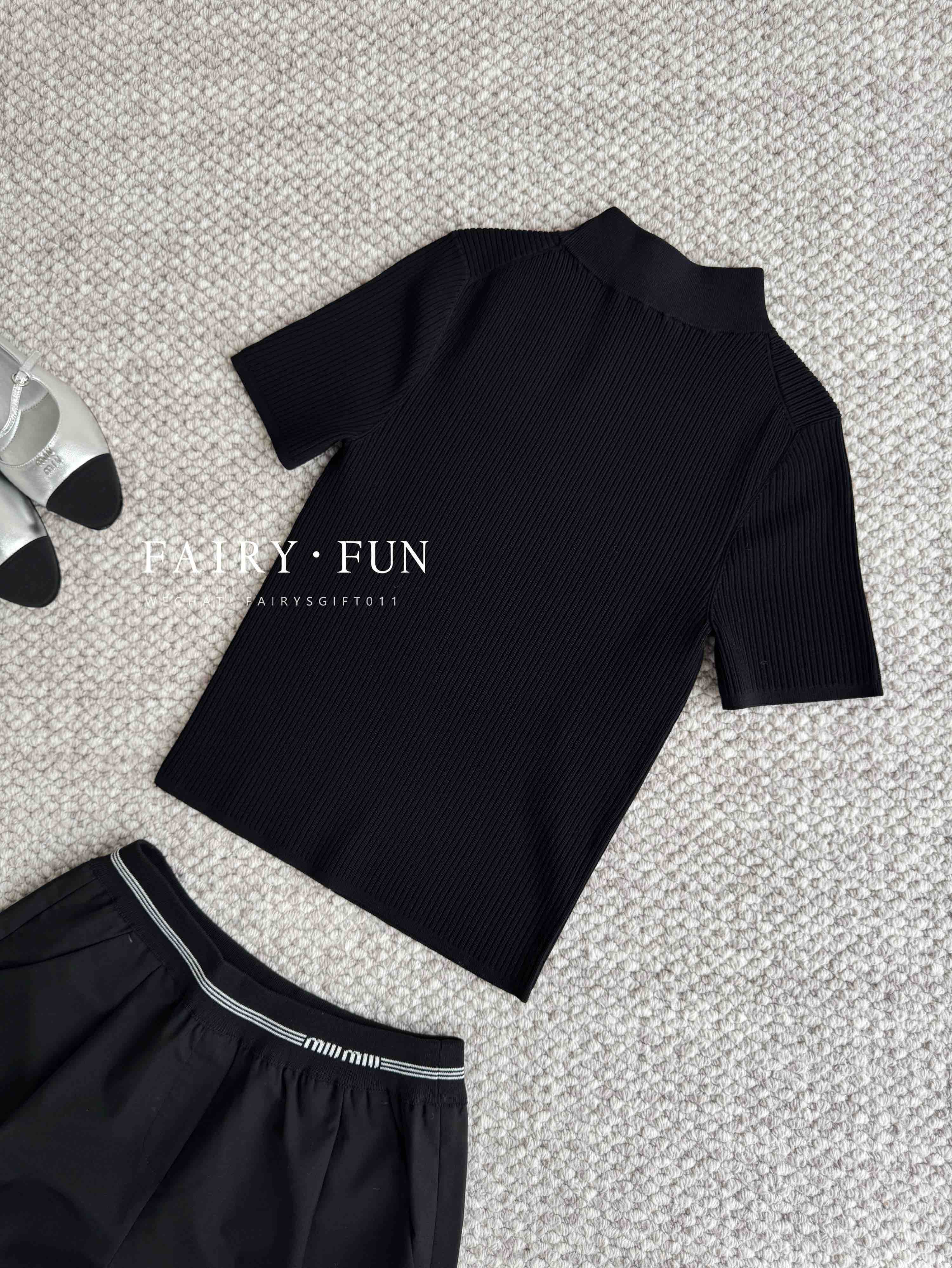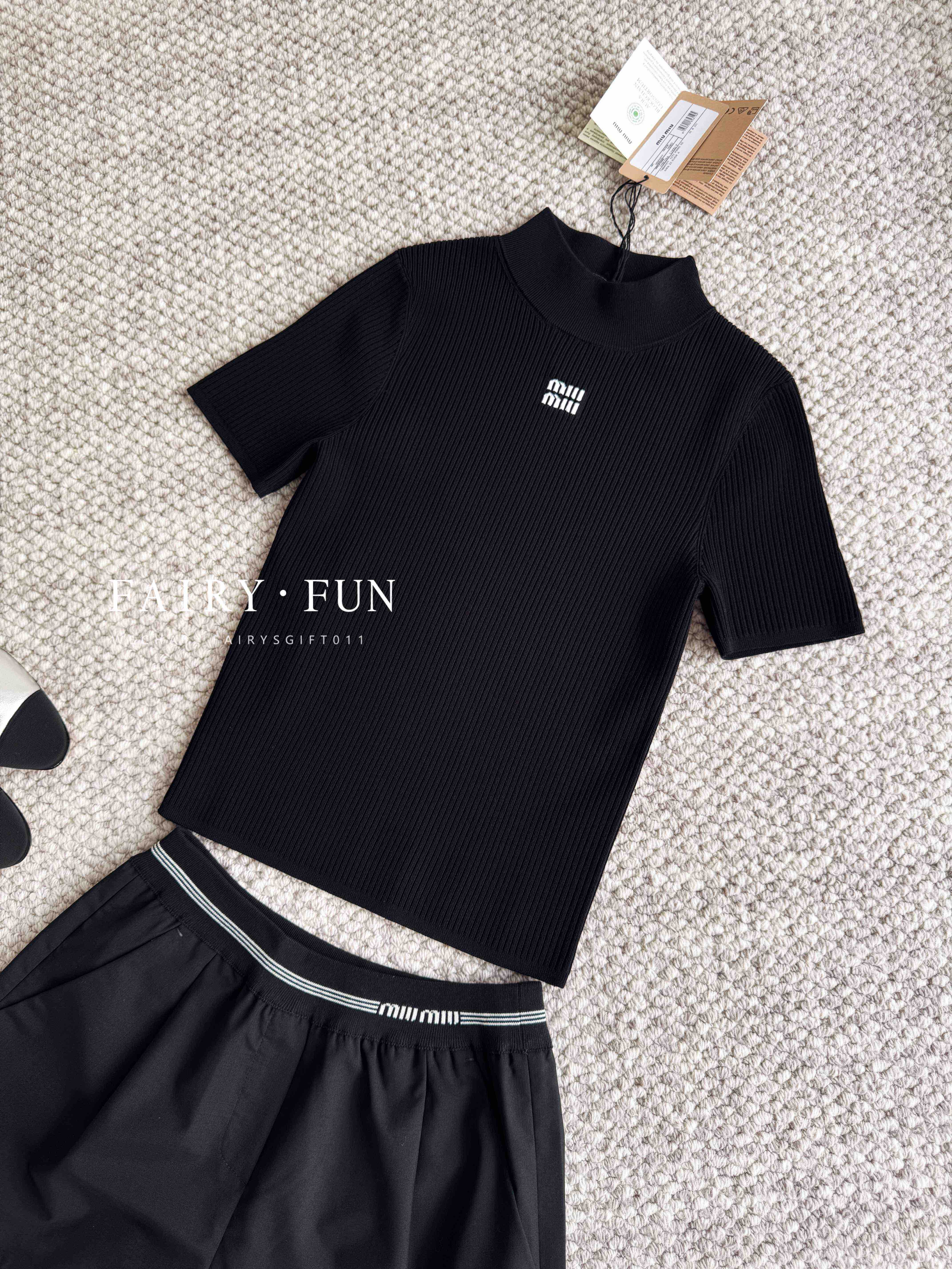 MIU-S 立领徽标针织短袖