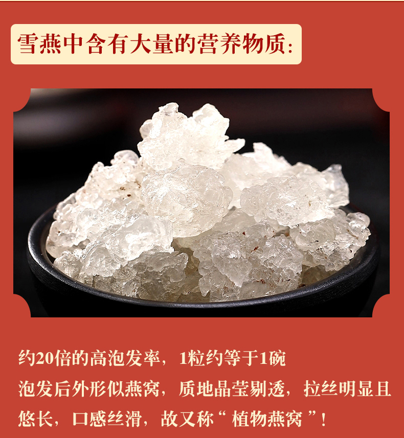 【天然雪燕】野外生长、泡发率高、百分百拉丝、口感丝滑