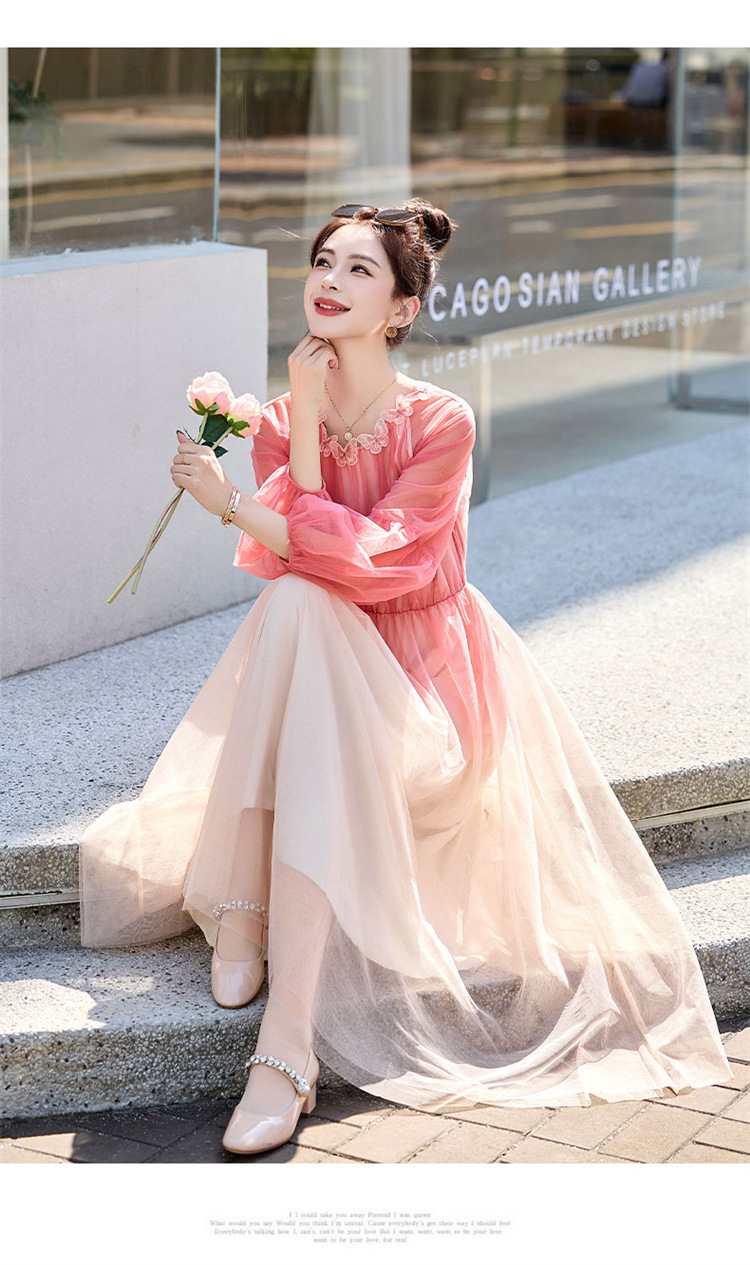 2025年春夏新款法式气质显瘦海边度假收腰长袖仙女裙HR-CZJ8775