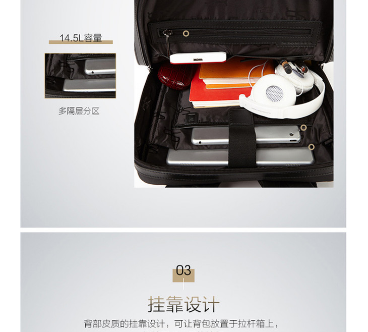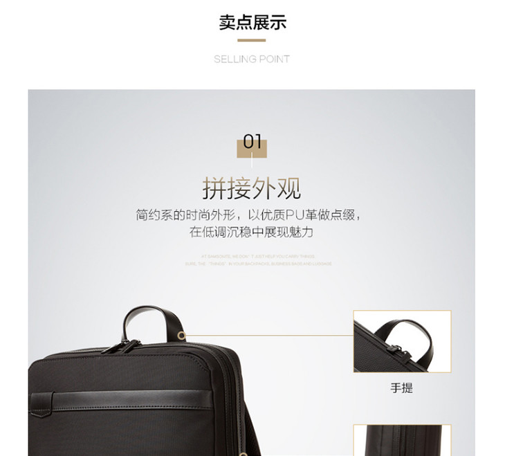 新秀丽电脑双肩包 简洁外观 PU拼接 商务时尚 DF0