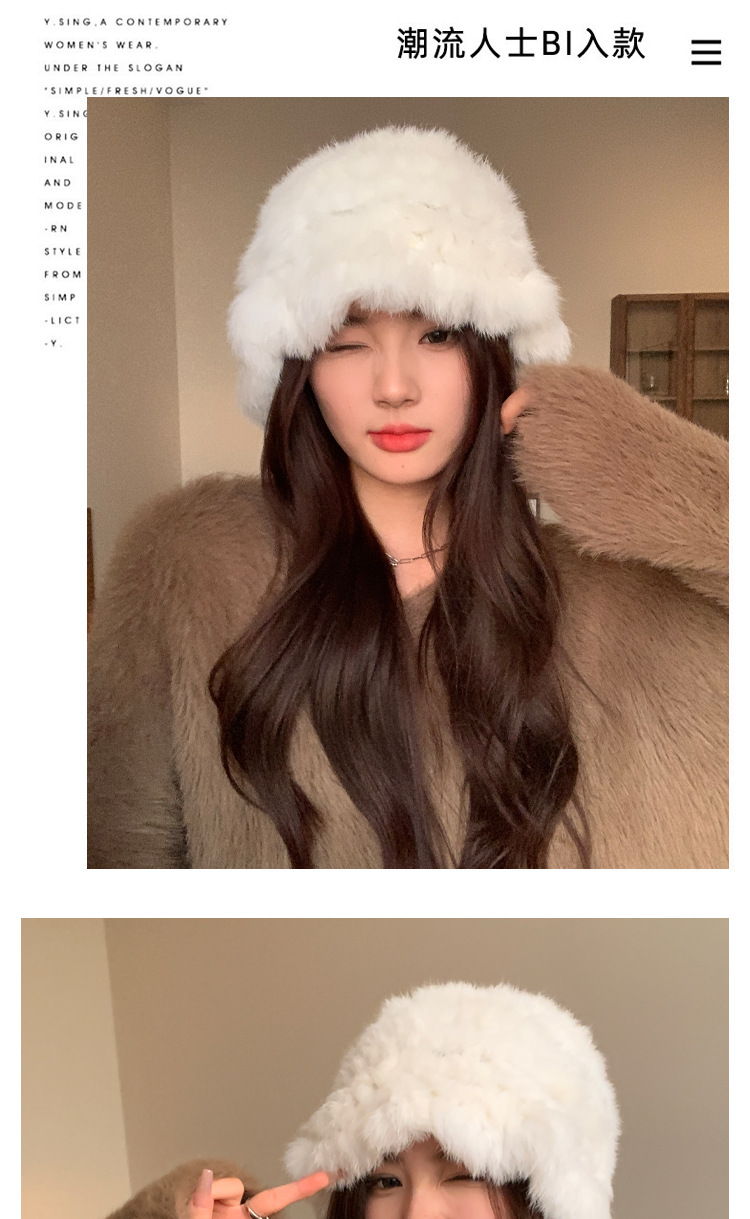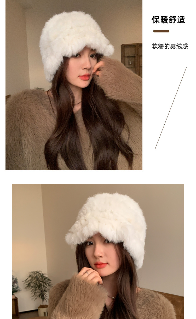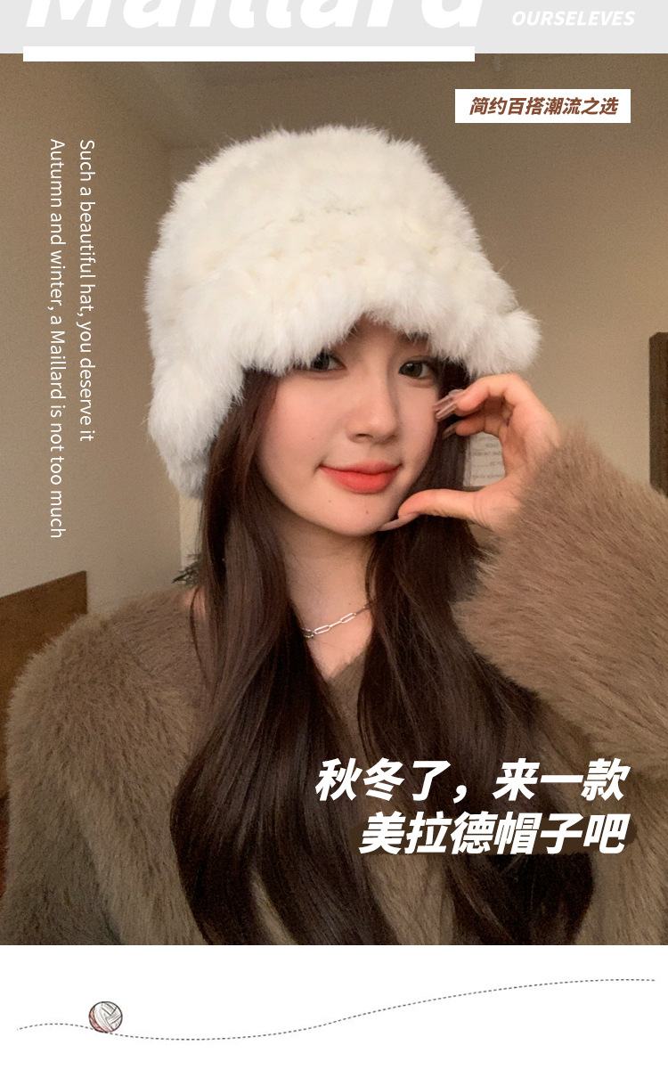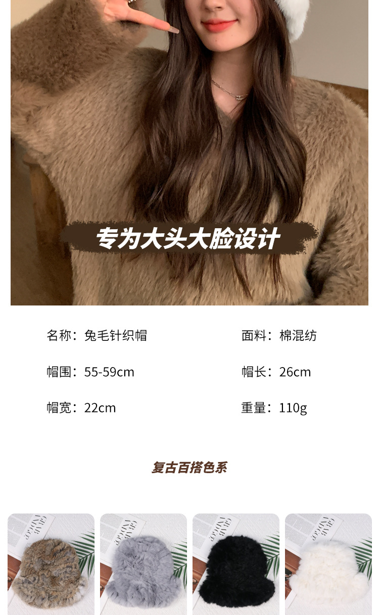 秋冬季【云朵毛绒帽】韩版保暖兔毛帽 日系大头围显脸小 毛茸茸盆帽