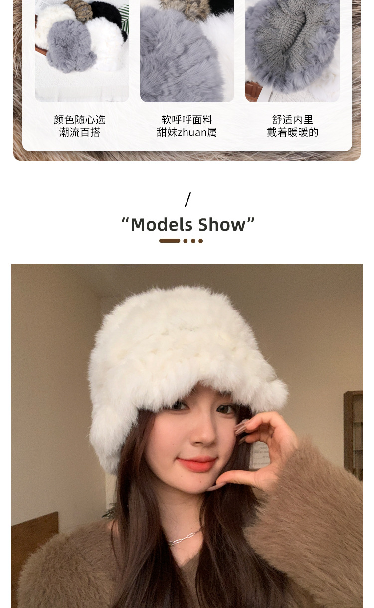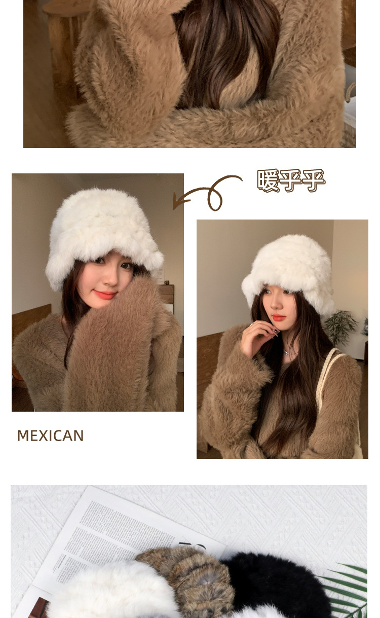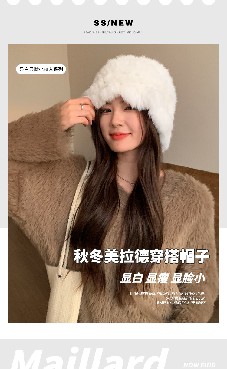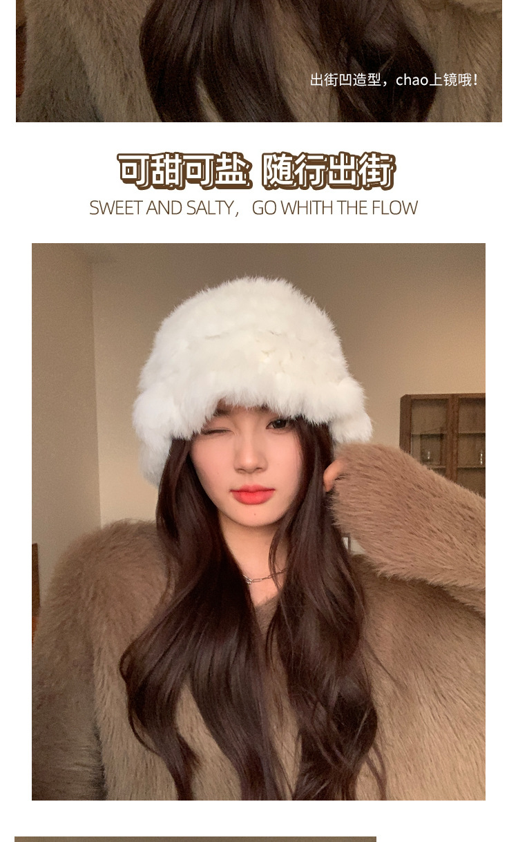 秋冬季【云朵毛绒帽】韩版保暖兔毛帽 日系大头围显脸小 毛茸茸盆帽
