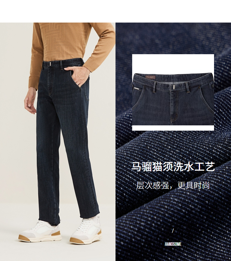 【含羊毛】柒牌男装牛仔裤含莫代尔2025秋冬新款男裤耐磨直筒弹力129H71650