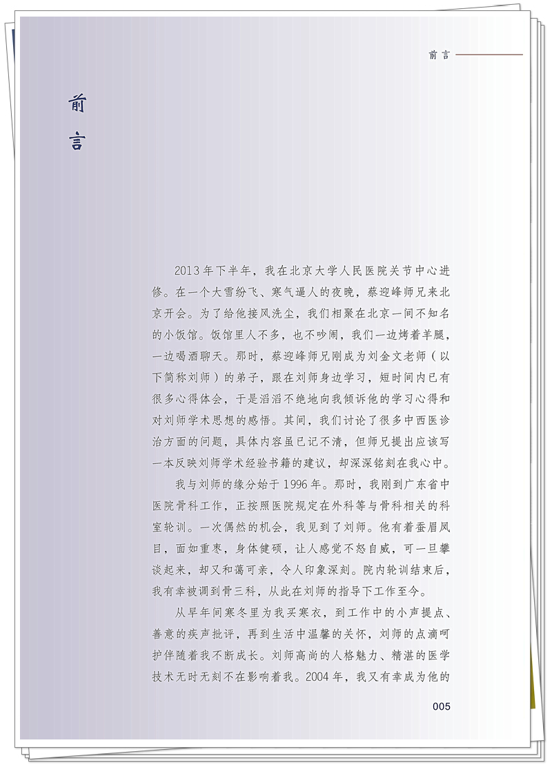 岭南骨伤科的近代,是一个名医辈出的时代,在东南亚以及全国有一定的影响力。刘金文教授是我国恢复研究生制度后的第一批骨伤科硕士研究生,教授、博士生导师,第六批全国老中医药专家学术经验继承工作指导老师、广东省名中医。从事骨伤临床工作逾50年,先后师从岭南骨伤科五大家的蔡忠和全国十大骨伤名师何竹林的再传弟子。本书从一位骨伤科医生的角度,将《伤寒》《金匮要略》等经典中有关骨伤科方面的条文做了简单的解读,同时记录了刘金文教授在临床工作中的点滴经验,既有中医内治法经验,也有还有手法、针灸方面的心得,还有手术方面的经验、将刘教授一些自己真正的心得体会写出来,宁缺勿滥,贴近社会,尽量少使用艰深的专业词汇,让社会大众,不管是不是医生,都能有所获益。本书的最后,刘金文教授的弟子根据现存资料以及近年的中医流派研究成果将岭南骨伤科流派的历史做了一个粗略的记述,虽然可能不是特别准确,但是,希望读者在读这些历史时,能使等