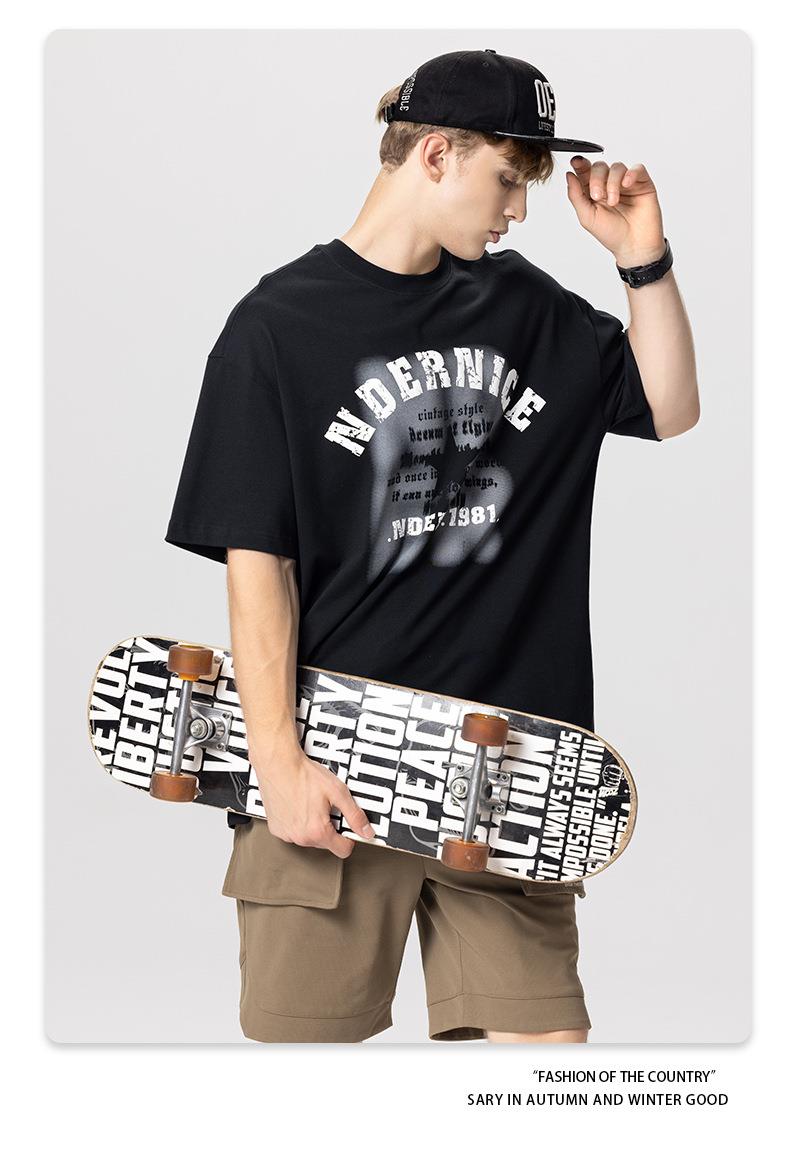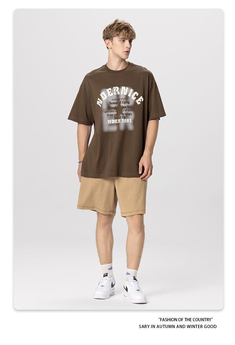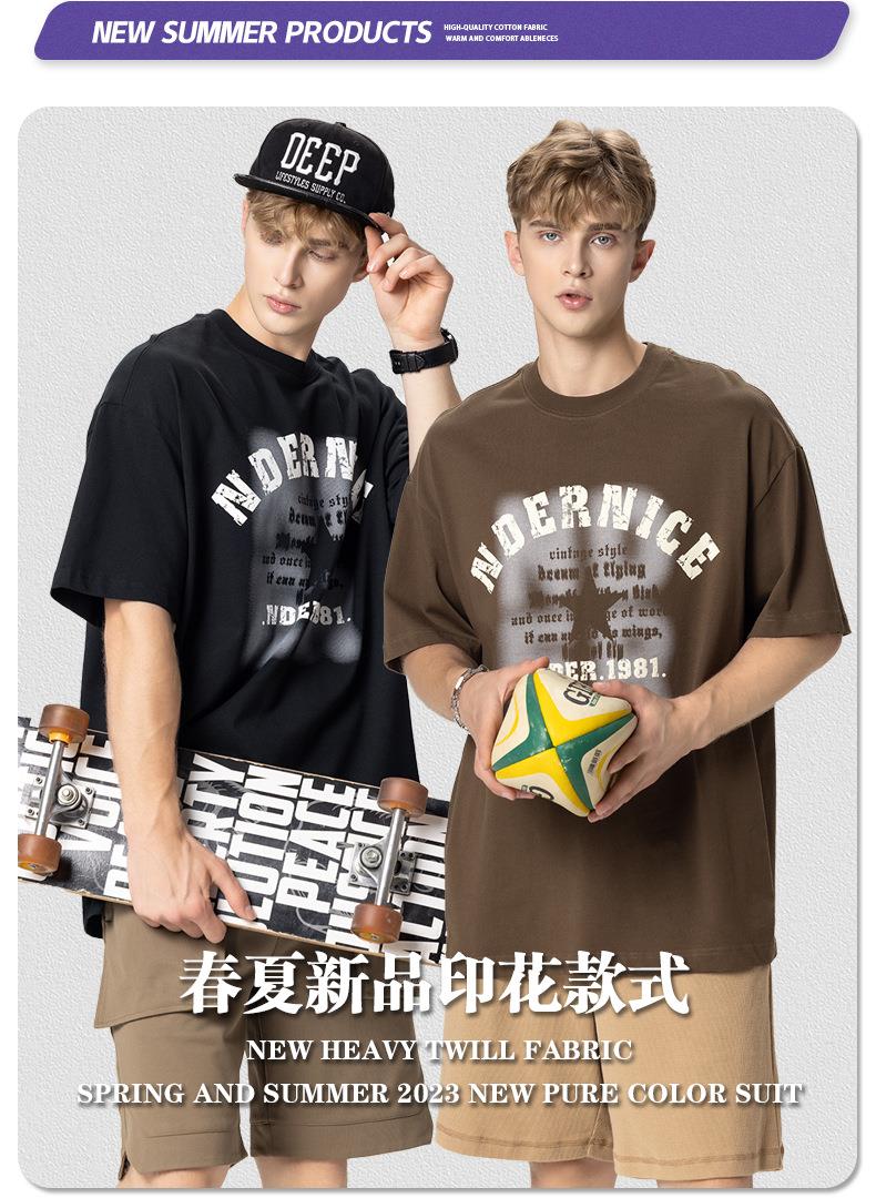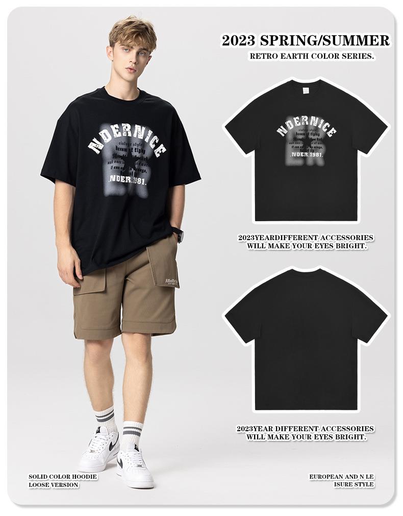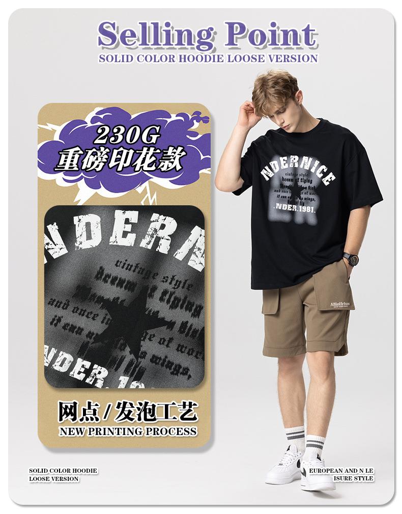 RS男装|2023夏季230克纯棉美式潮牌高街字母网点印花短袖宽松t恤