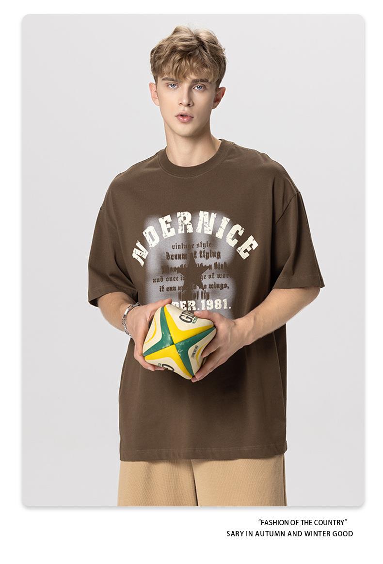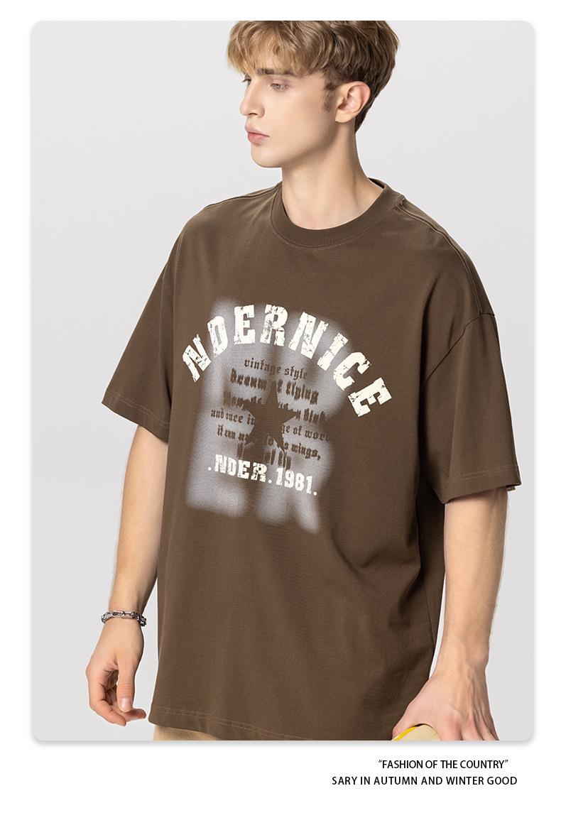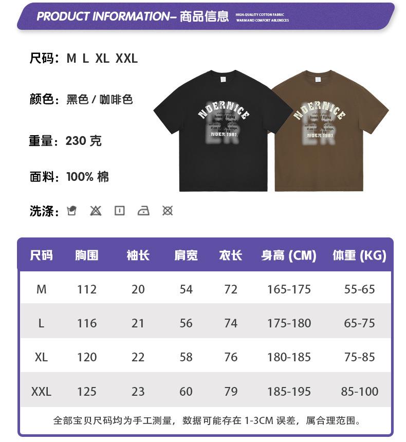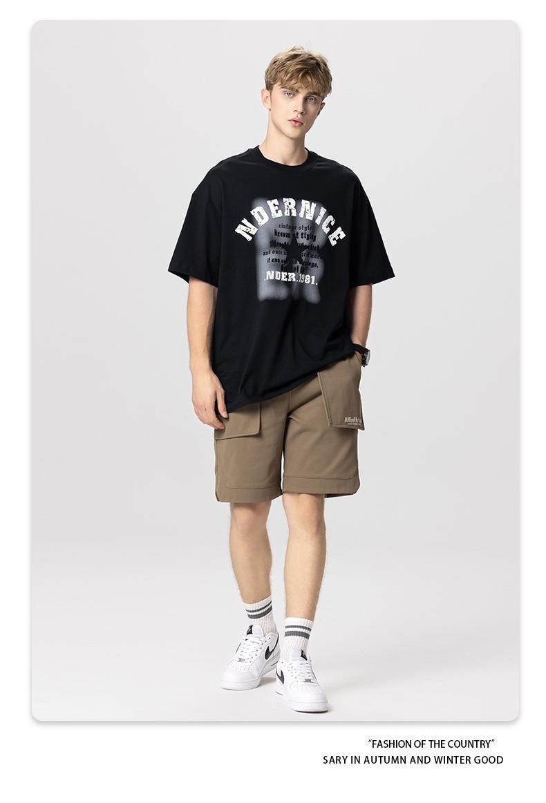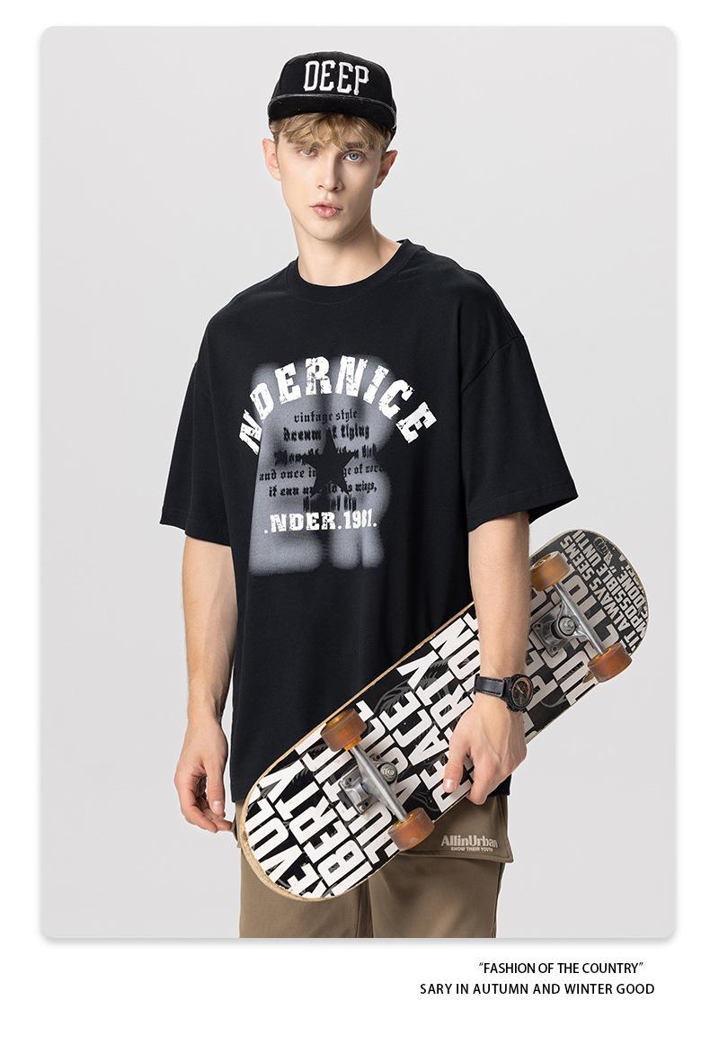 RS男装|2023夏季230克纯棉美式潮牌高街字母网点印花短袖宽松t恤