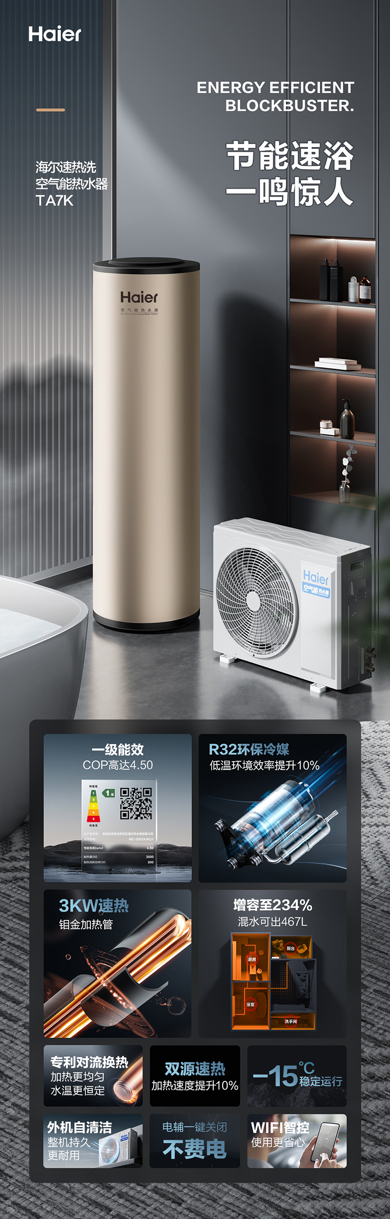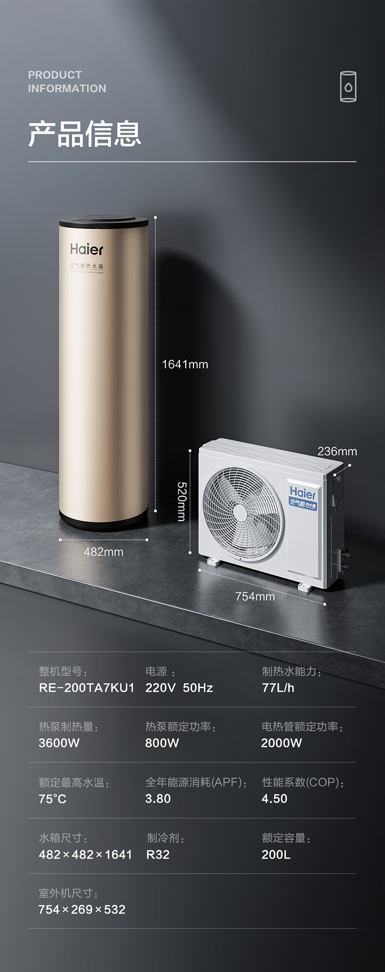 海尔Haier/海尔 RE-200TA7KU1 空气能热水器外机自清洁智控节能 RE-200TA7KU1