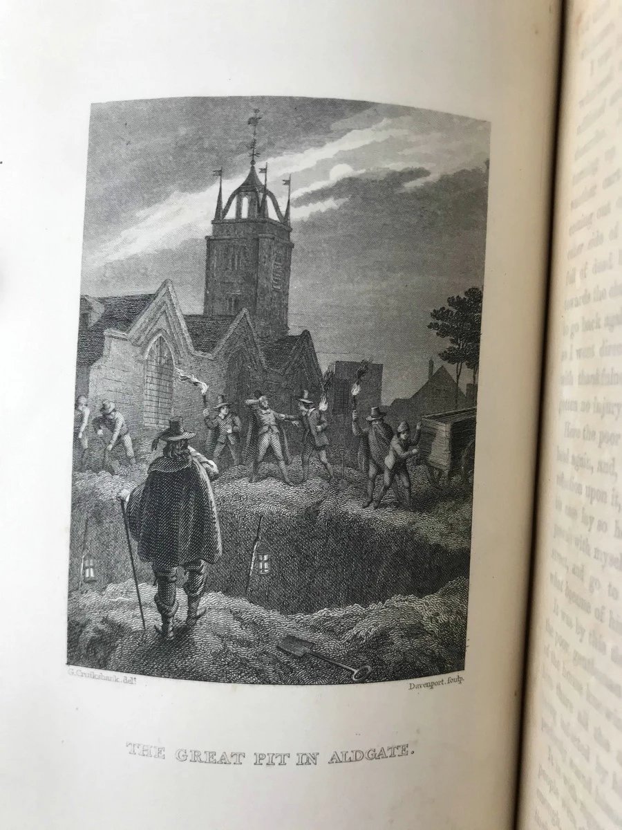 约19世纪早期 笛福《大疫年日记》 克鲁克香克4幅插图 漆布精装32开