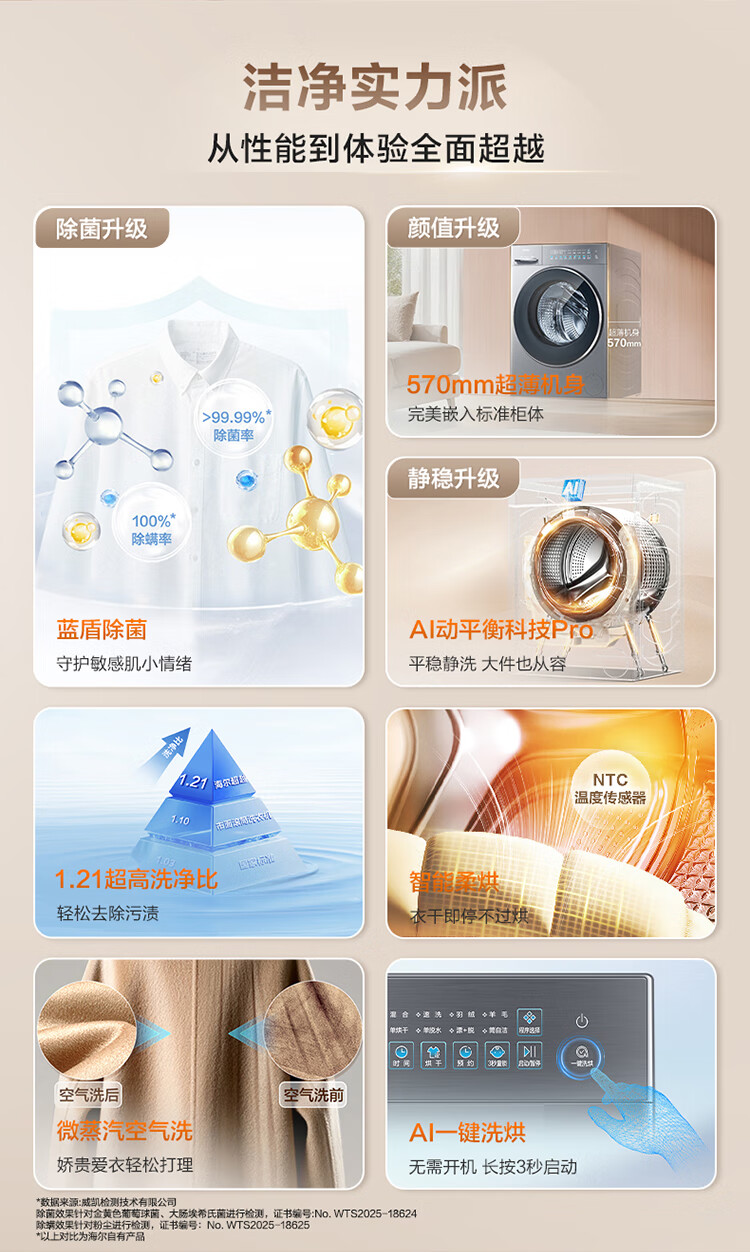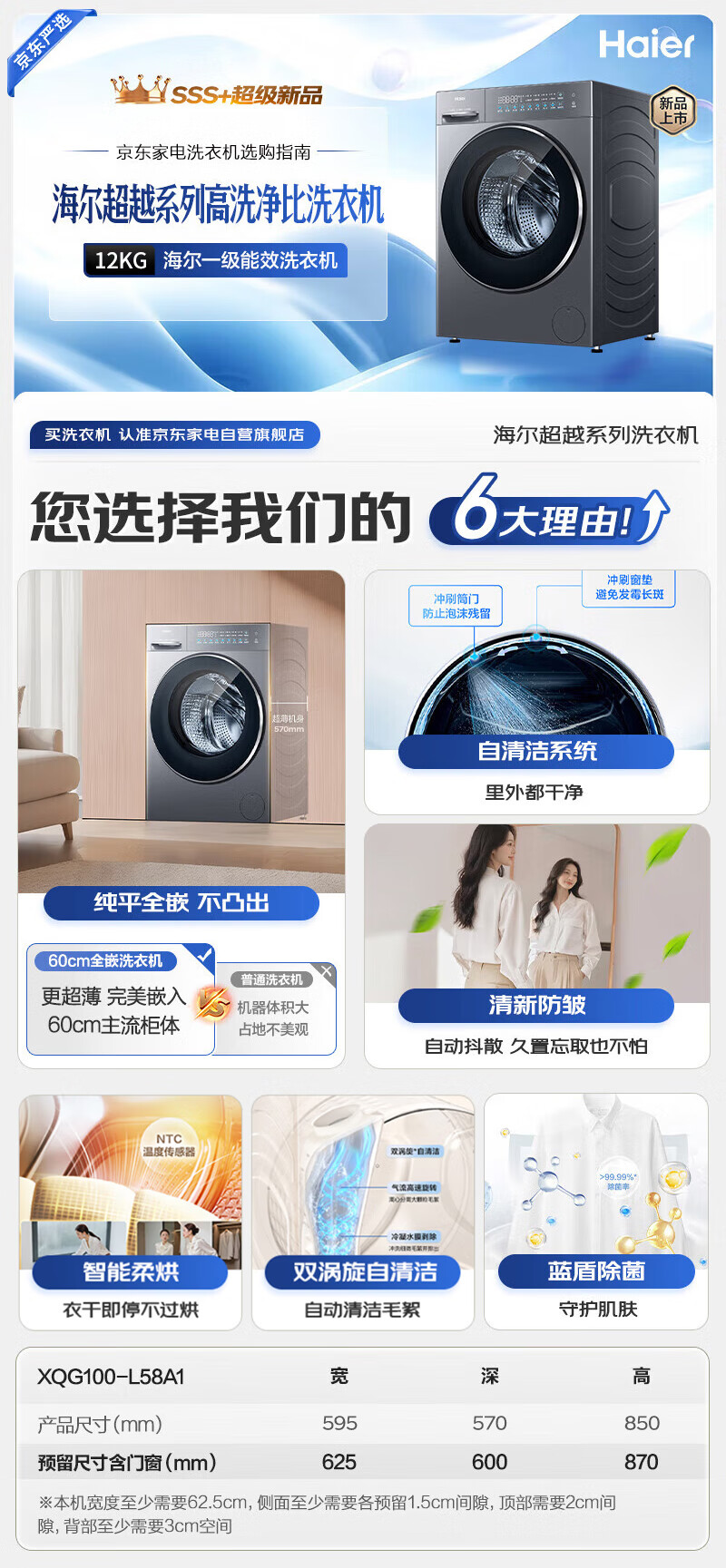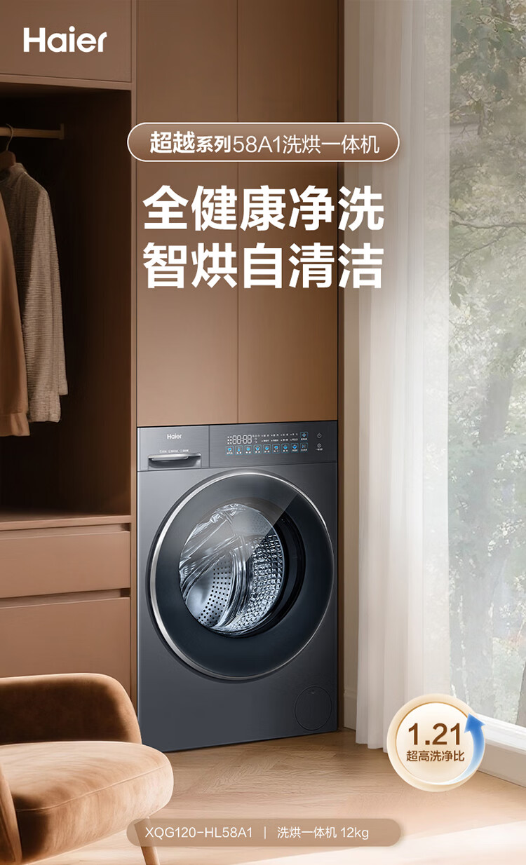 海尔(Haier)滚筒洗衣机全自动12KG新品丨洗烘一体带烘干9KG+超薄平嵌+蓝盾除菌+八维减震 XQG120-HL58A1