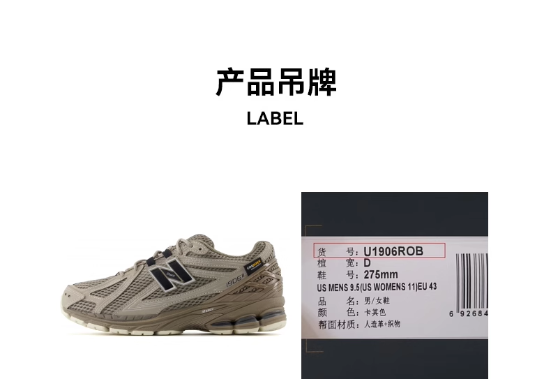 【新百伦】B座5楼New Balance 25年春夏男女同款大网面休闲运动鞋1906ROB