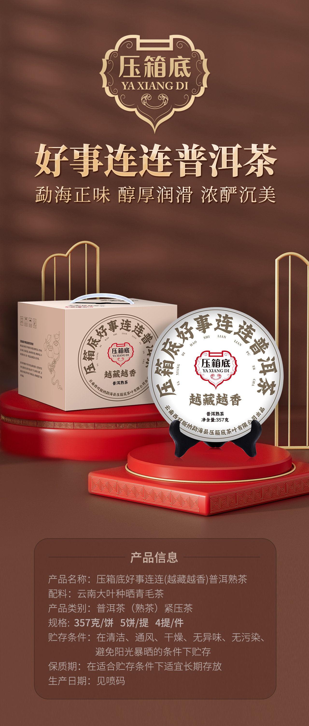 压箱底·好事连连普洱茶 越藏越香 2023年云南普洱熟茶 饼茶