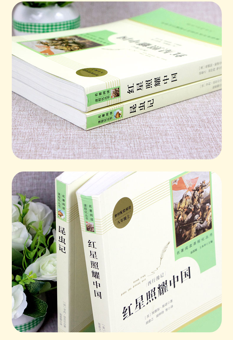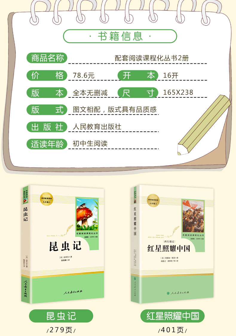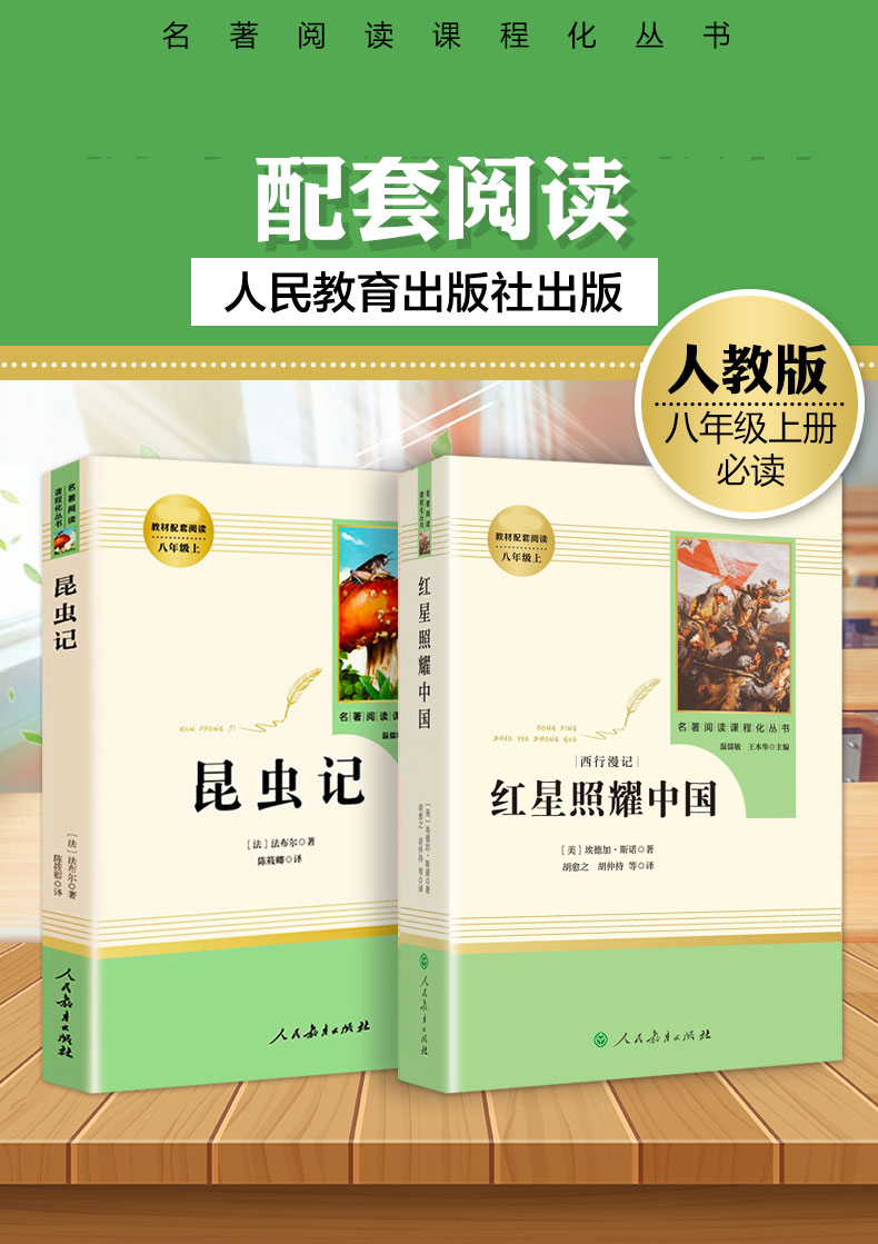 昆虫记和红星照耀中国原著正版 人民教育出版社 初中生八年级必读书目 初中人教版上册完整无删减青少版