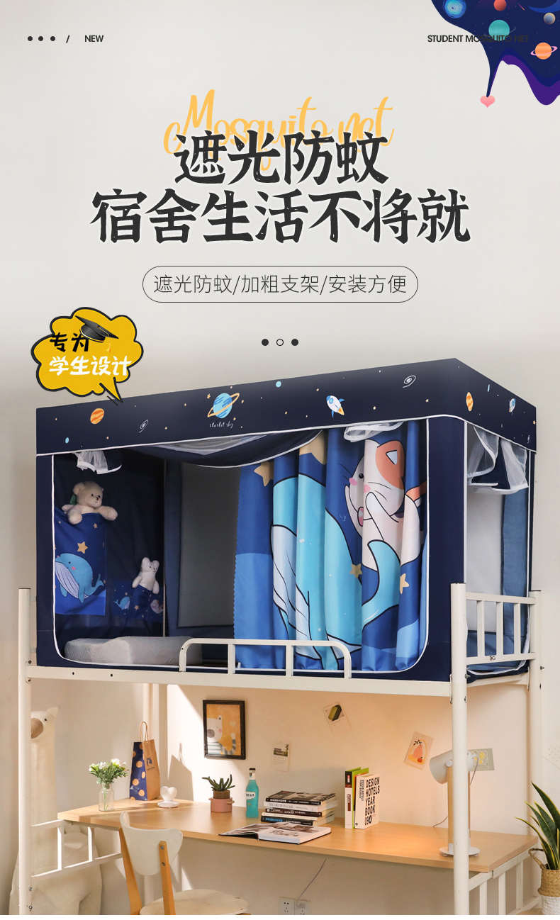 大口袋遮光蚊帐床帘款学生蚊帐上下铺蚊