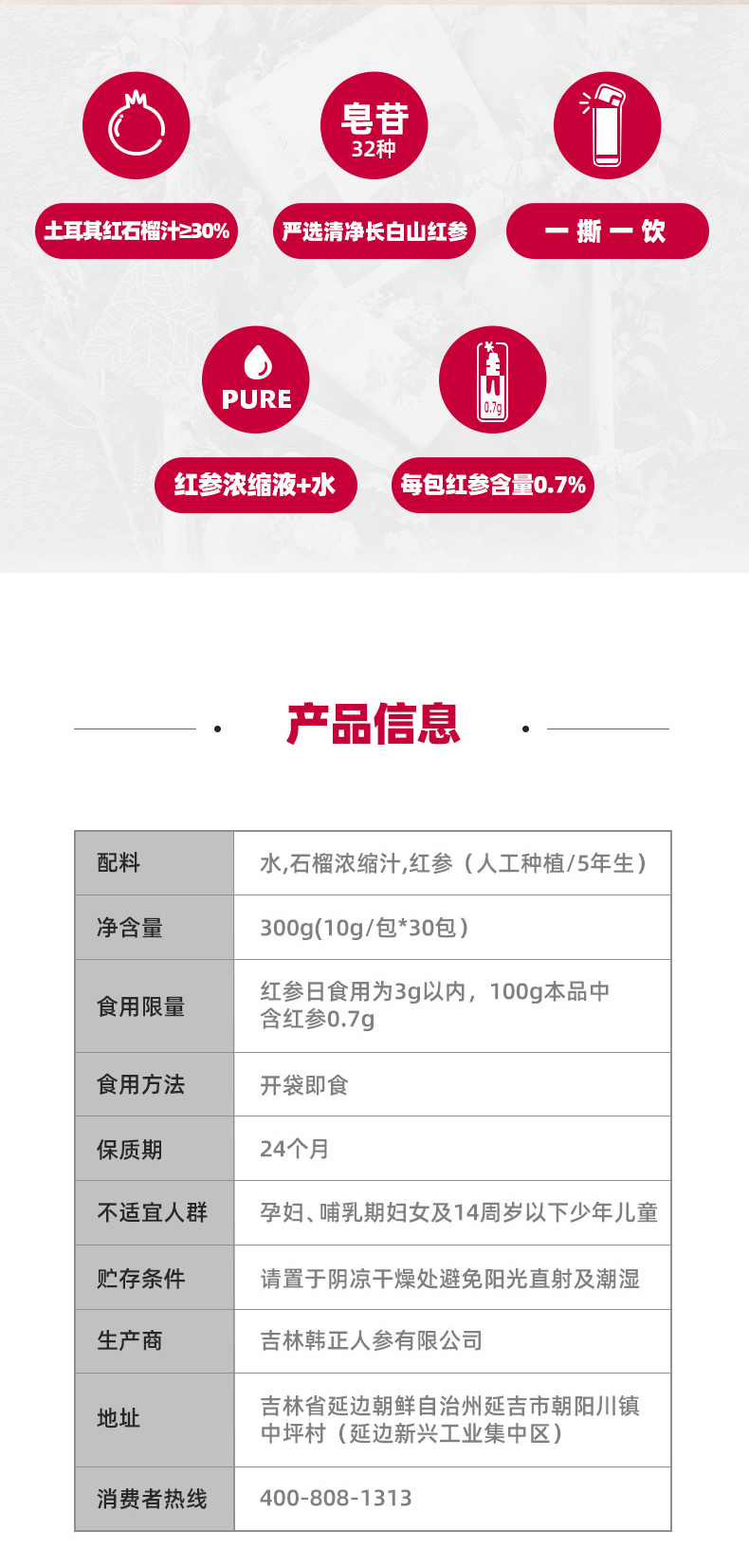 【配料】水、石榴浓缩原汁、红参(人工种植/5年生或5年生以下)