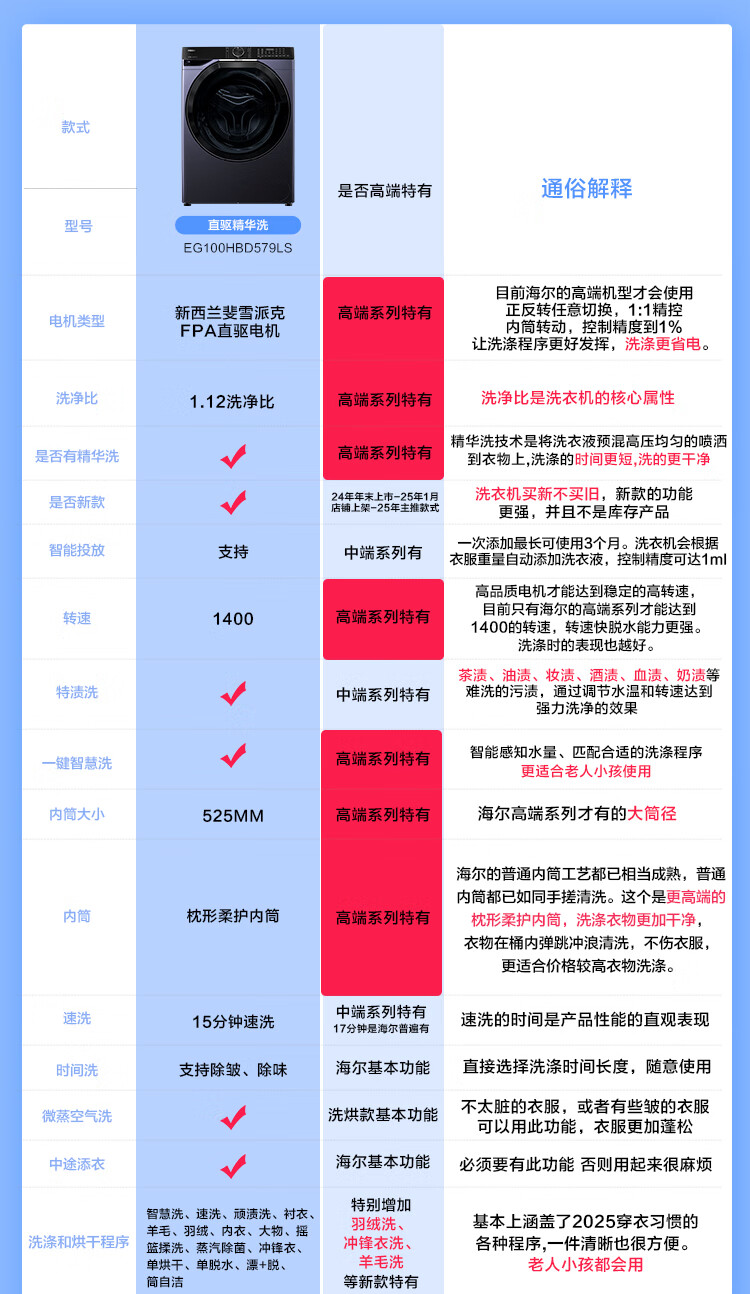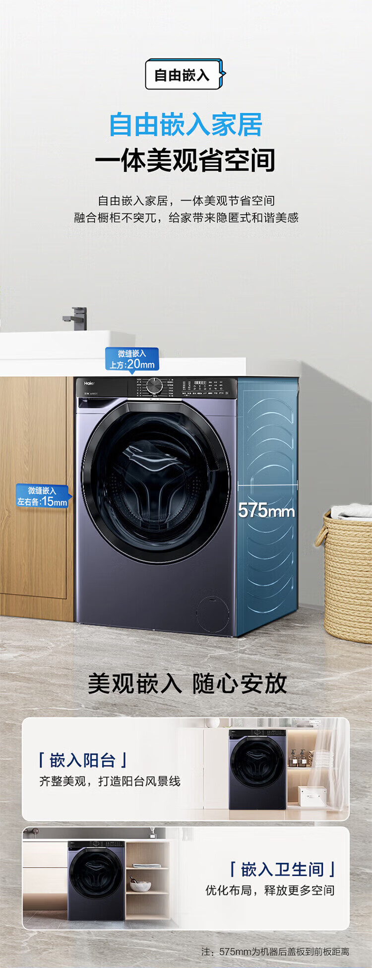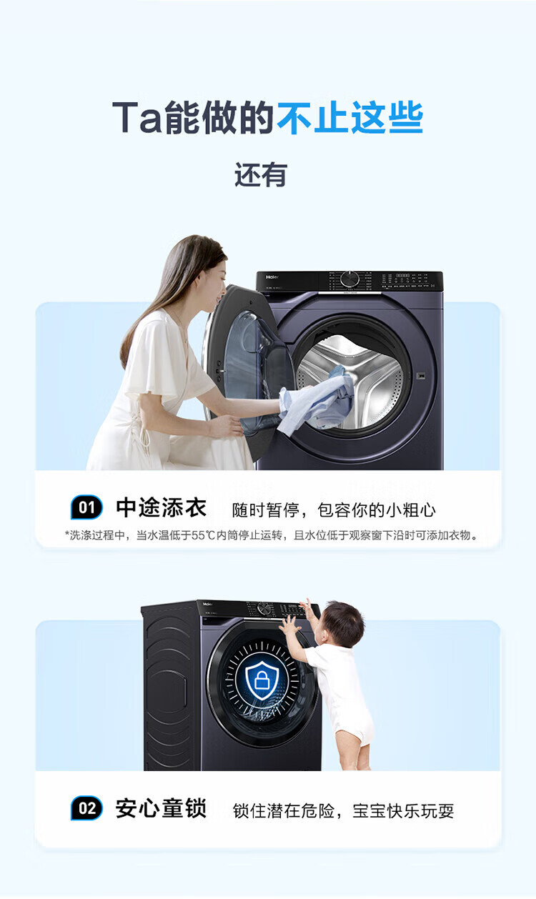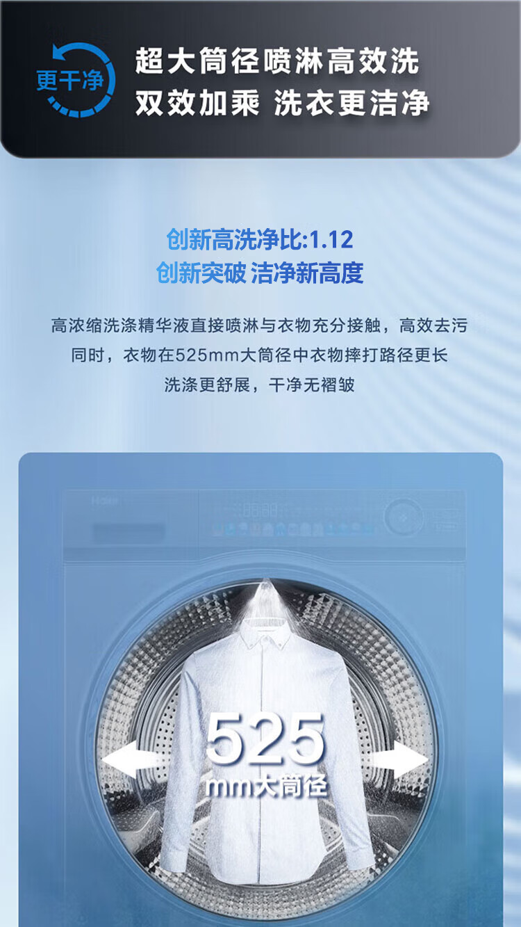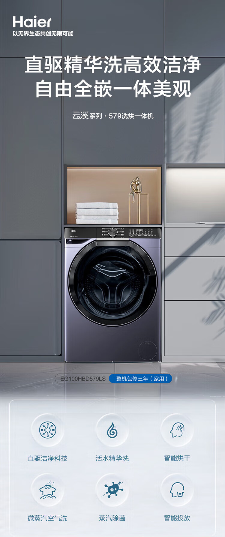 海尔(Haier)滚筒洗衣机全自动10公斤洗烘一体机直驱变频薄嵌入 云溪系列579LS洗烘一体【直驱精华洗2.0+1.12洗净比】