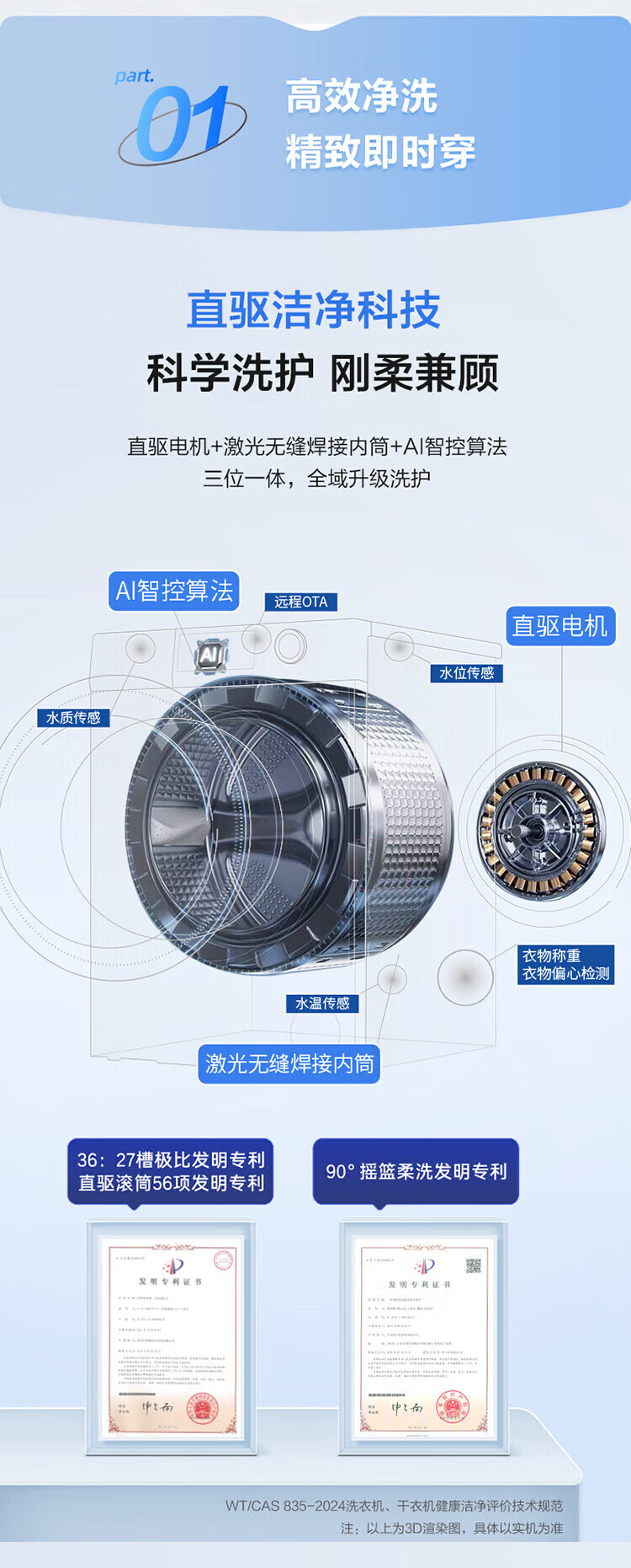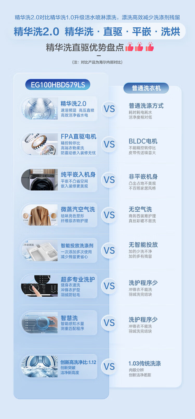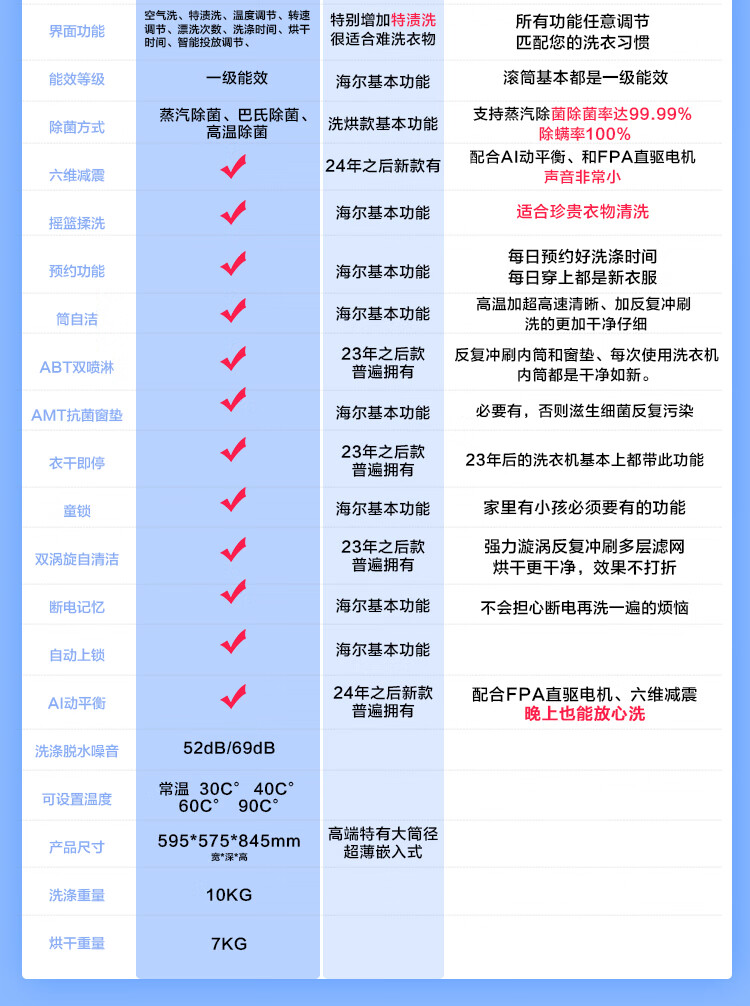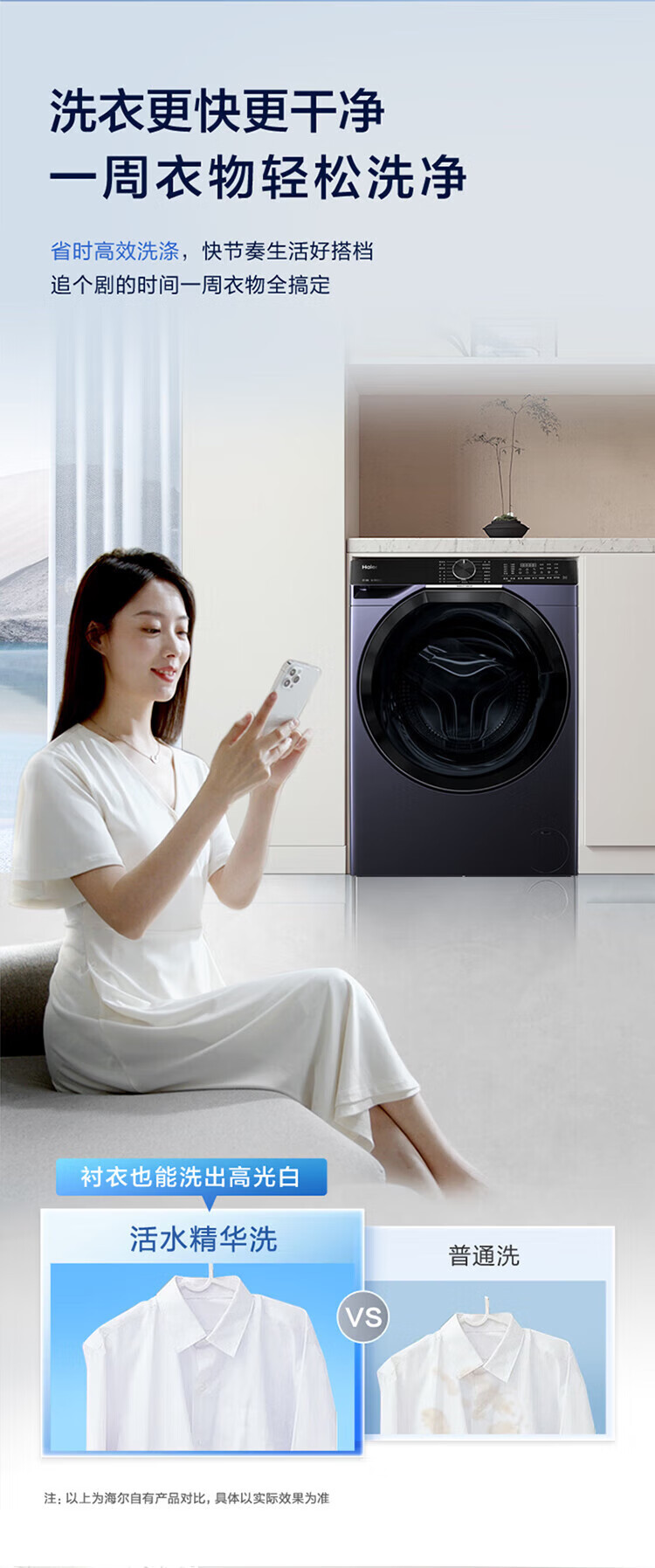 海尔(Haier)滚筒洗衣机全自动10公斤洗烘一体机直驱变频薄嵌入 云溪系列579LS洗烘一体【直驱精华洗2.0+1.12洗净比】