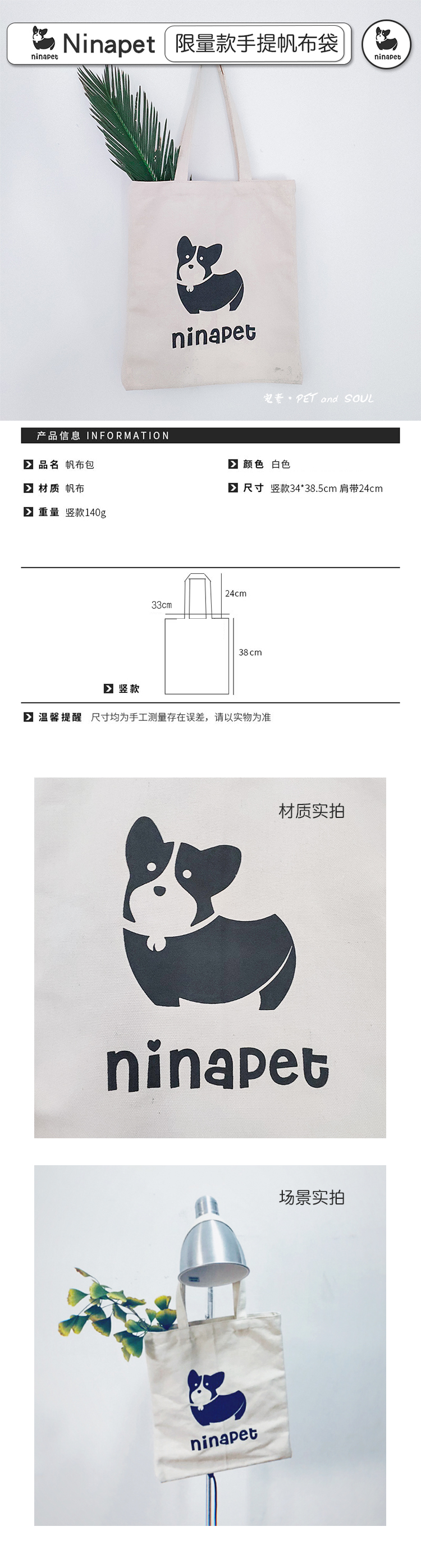 妮娜宠物 限定版定制帆布袋 出行背袋