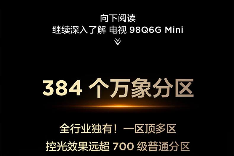 TCL电视【挂架版送装一体】98Q6G Mini 98英寸 384个万象分区 XDR1000nits 安桥2.1+2 288Hz 1级能效