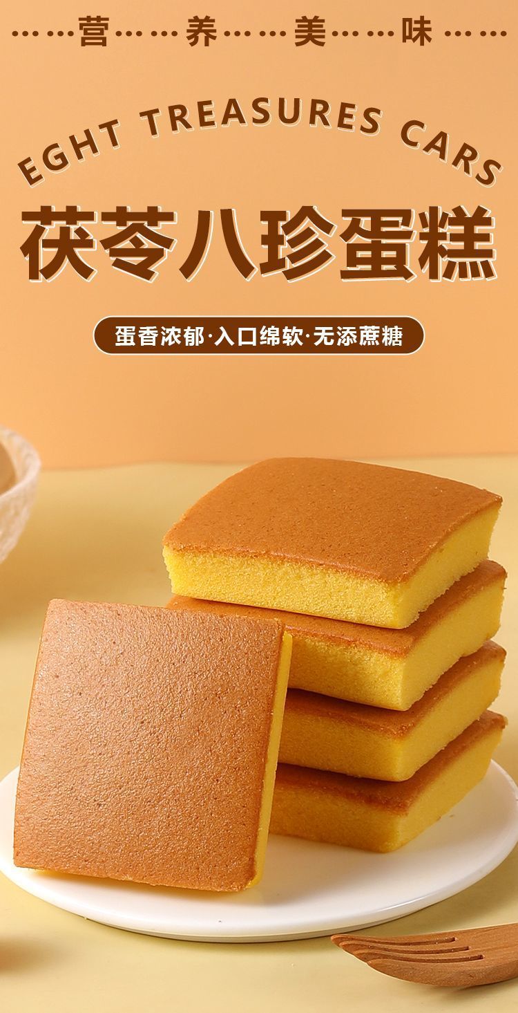 【清甜不腻更健康❗茯苓八珍蛋糕】甄选品质原料制作,鲜鸡蛋/茯苓/芡实/山药/薏米/莲子/山楂/白扁豆/枸杞,不单独添加蔗糖,美味健康无负担,超软面包营养早餐,学生中老年人零食品整箱L