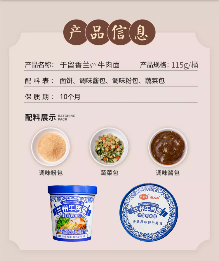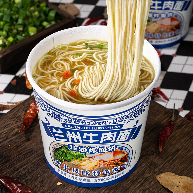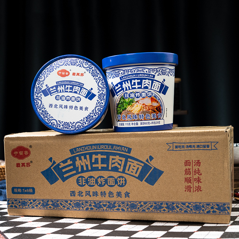 于留香兰州牛肉面桶装拉面酸汤面叶非油炸冲泡即食方便面泡面代发