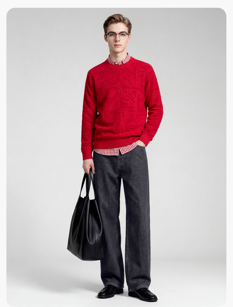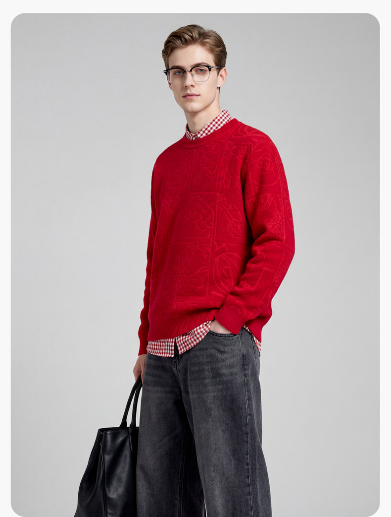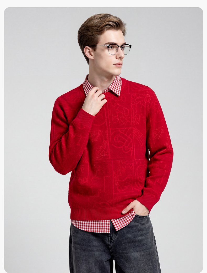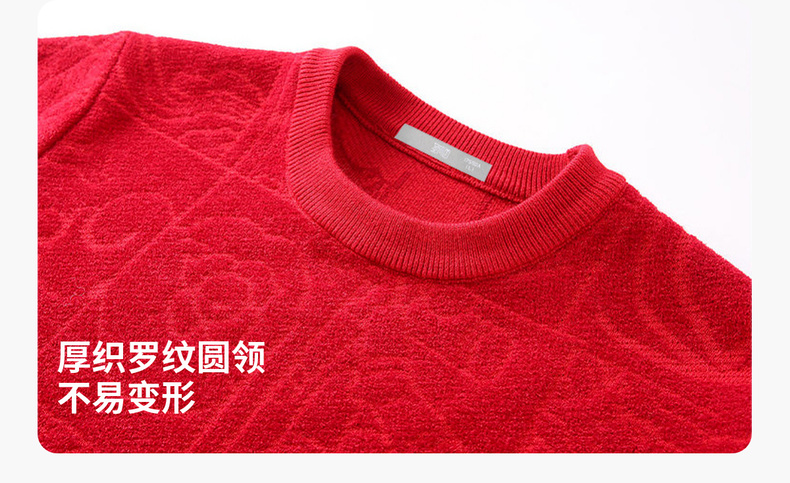 圣得西2025年冬季新款男士厚毛衫新中式提花圆领不易起球针织衫
