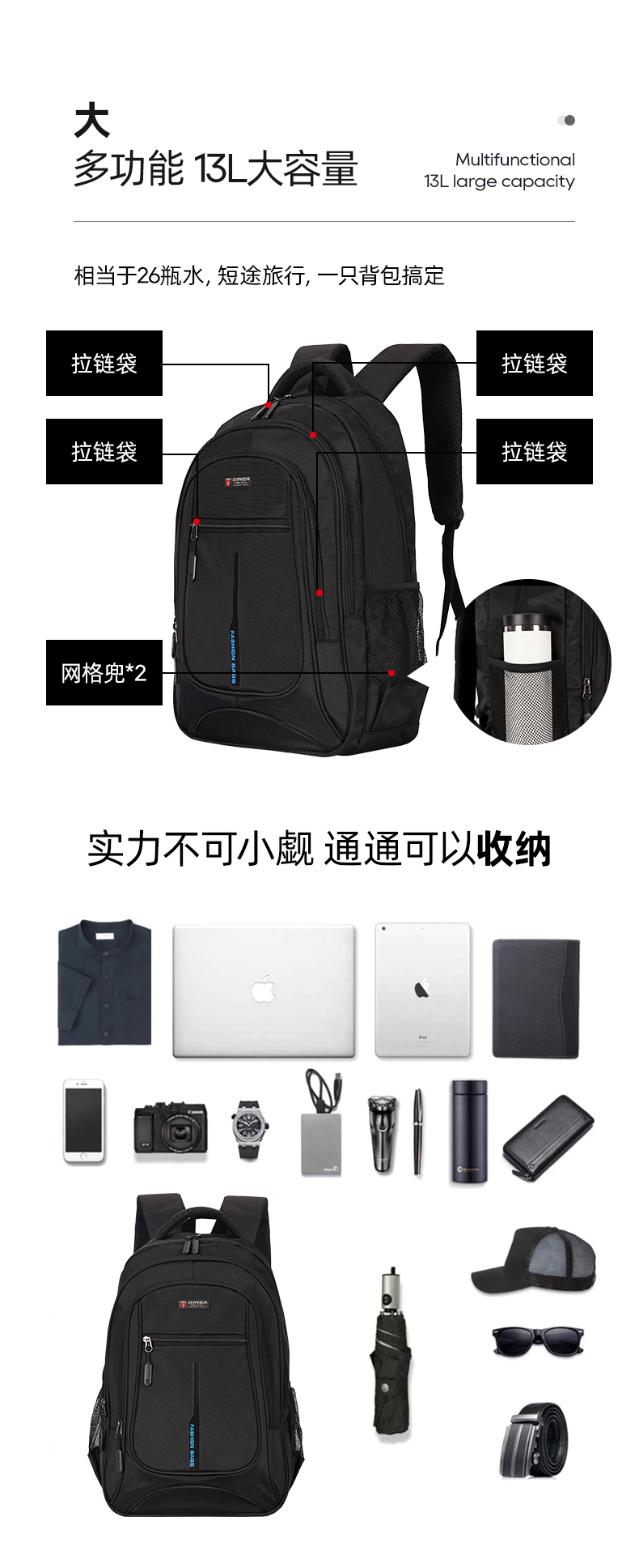 新春福利背包-银座实用大容量双肩包/书包B20075