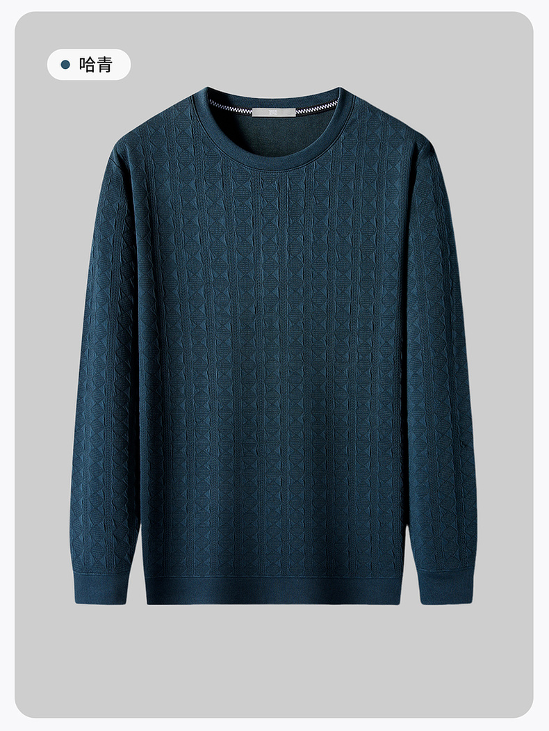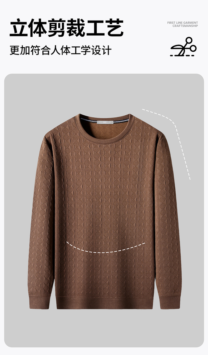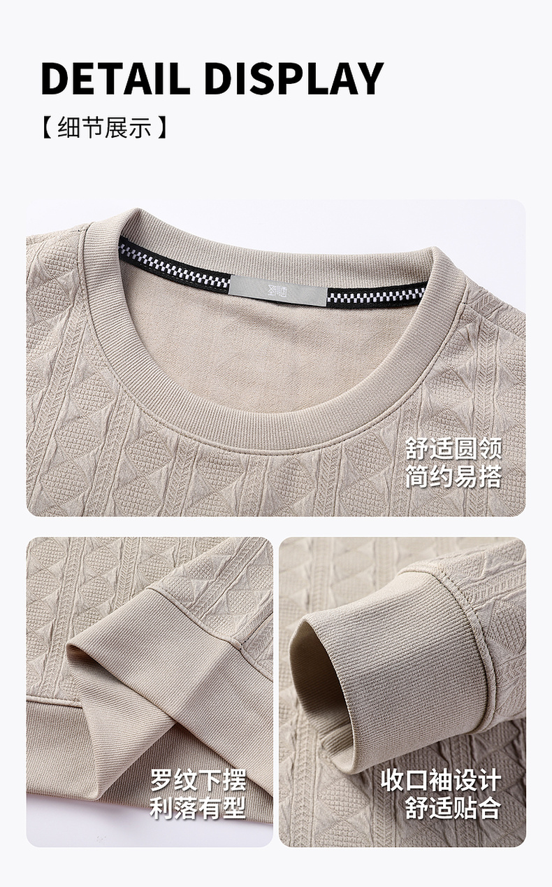 圣得西2025年秋季新款多色提花工艺休闲百搭男士圆领T恤长袖上衣