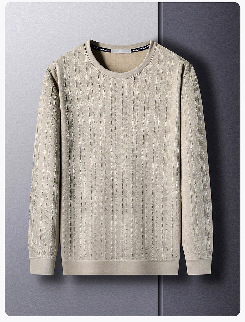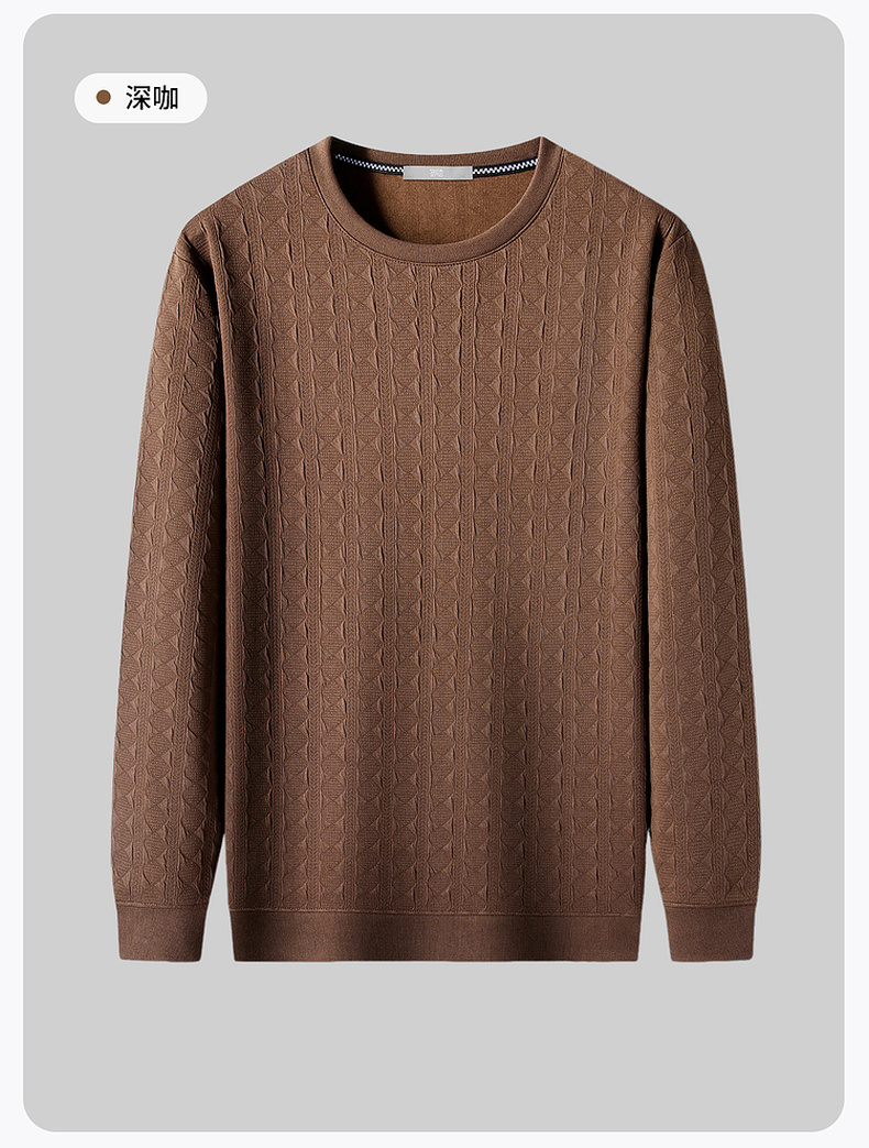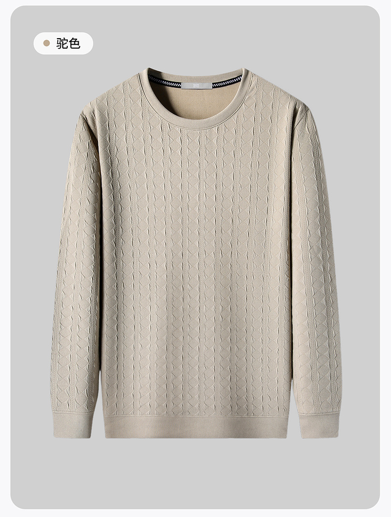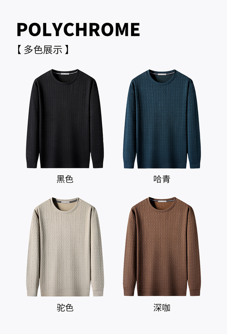 圣得西2025年秋季新款多色提花工艺休闲百搭男士圆领T恤长袖上衣