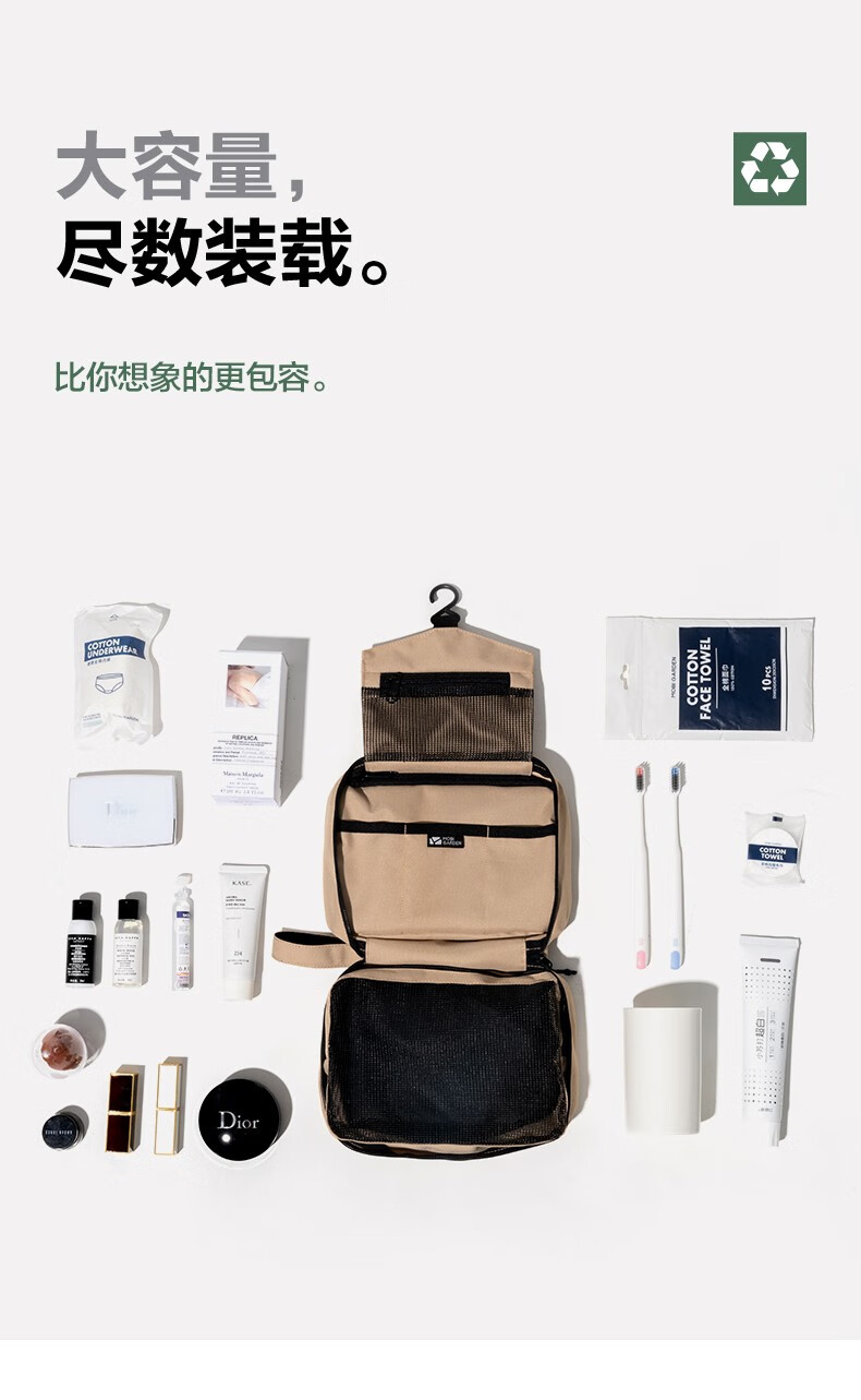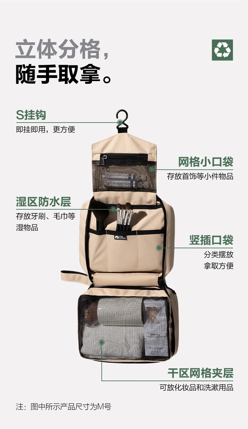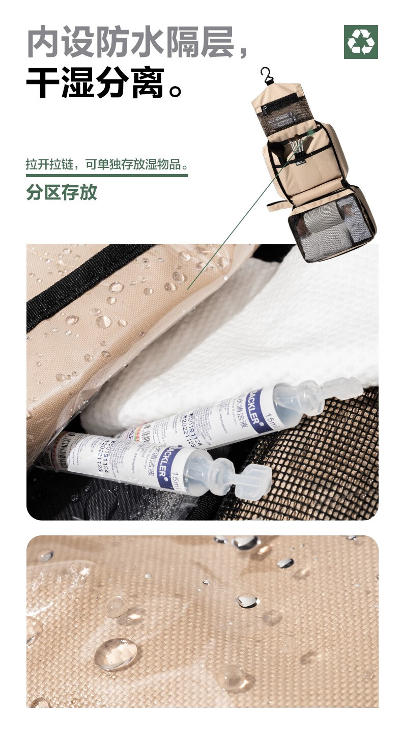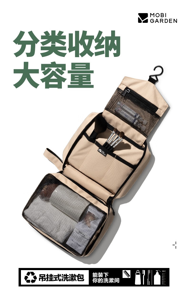 牧高笛(MOBIGARDEN)洗漱包 户外旅行便携装洗漱包 出差外出旅游吊挂式收纳包 沙石色L码NX21664002