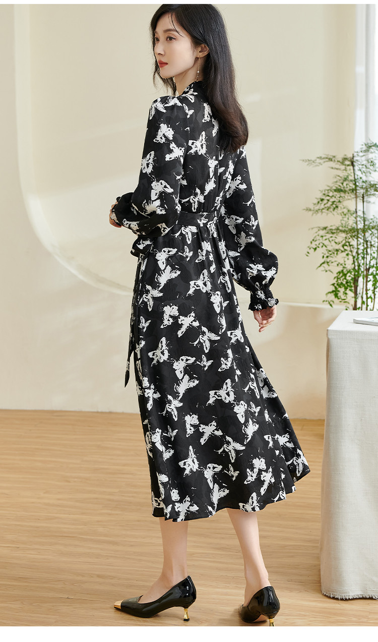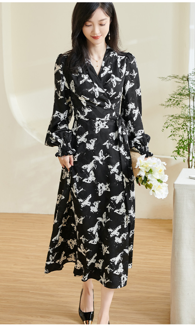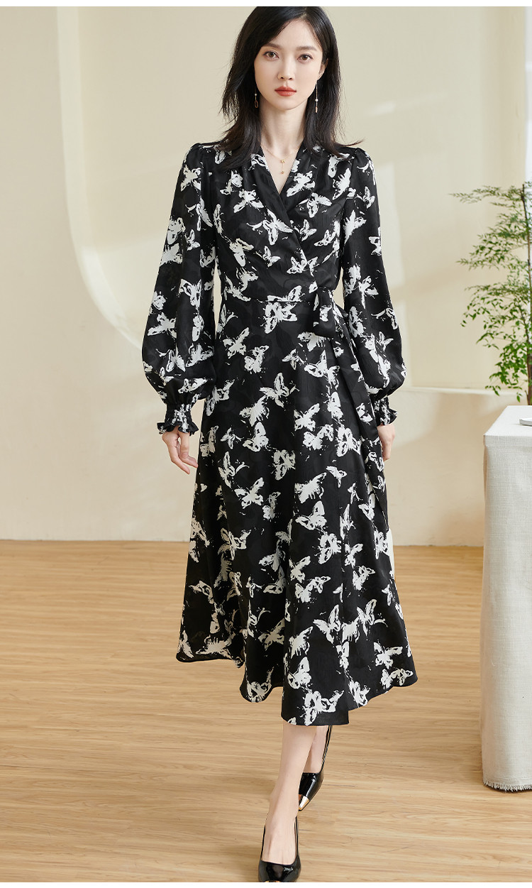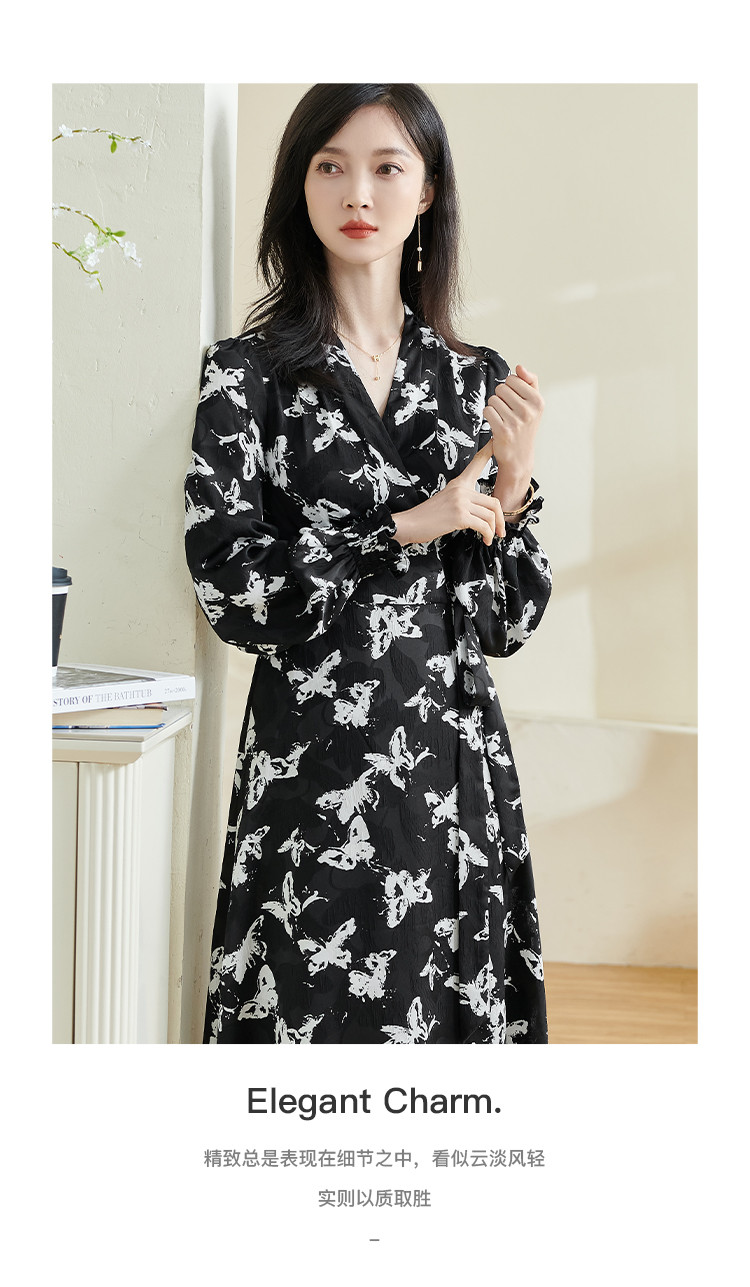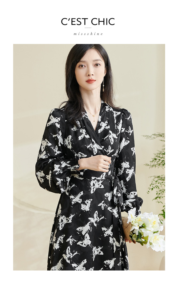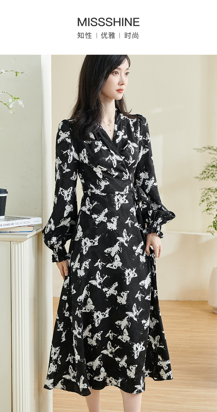 剩S/M/L/XL 米思阳2026春季新款气质高级感提花连衣裙修身收腰黑色茶歇大摆裙0388