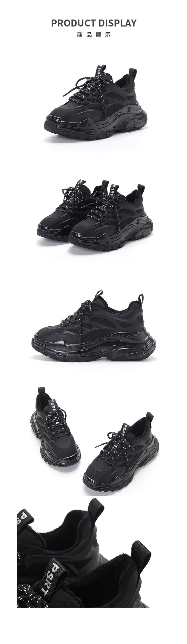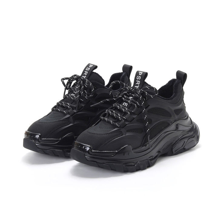 Safiya索菲娅纯黑简约系带老爹鞋绒里女鞋潮SF04112103