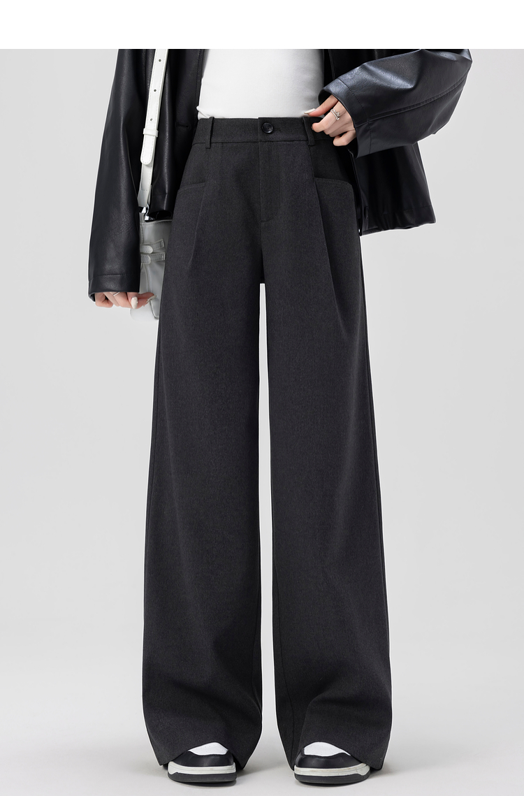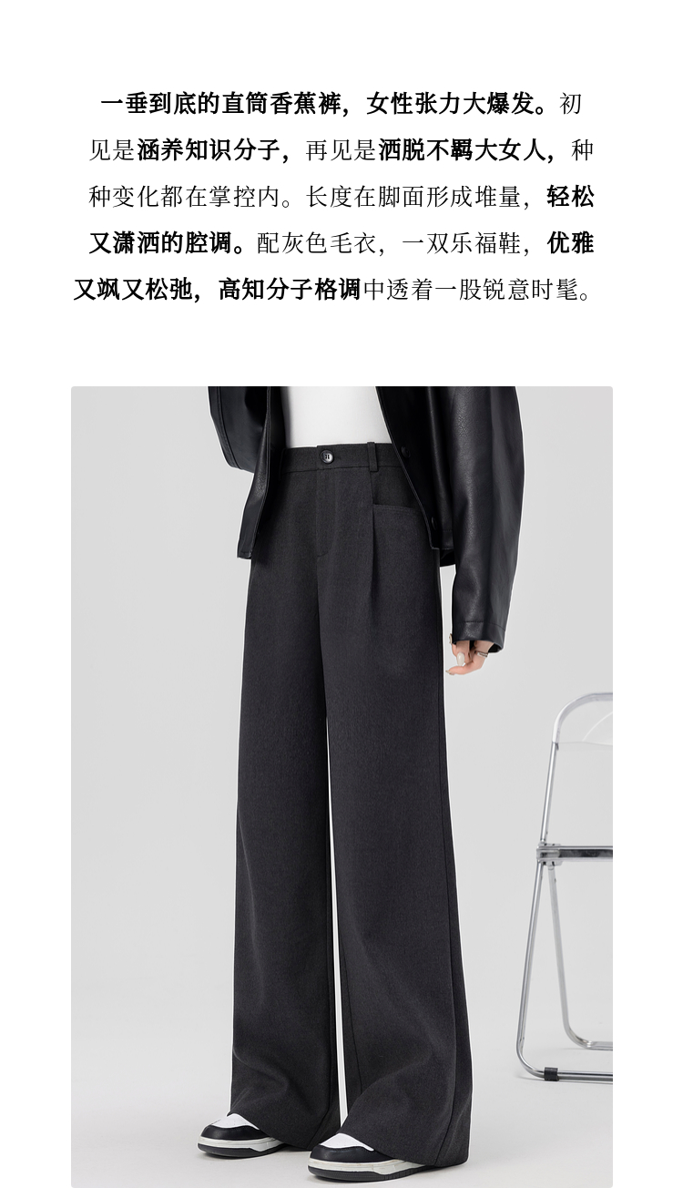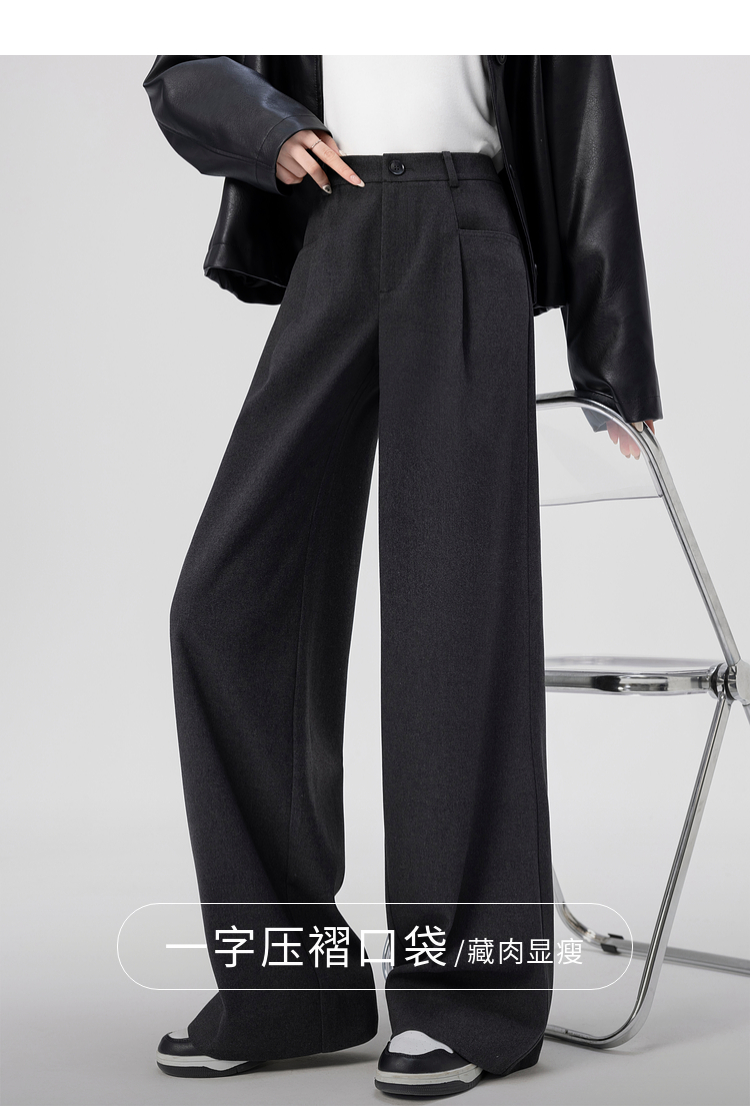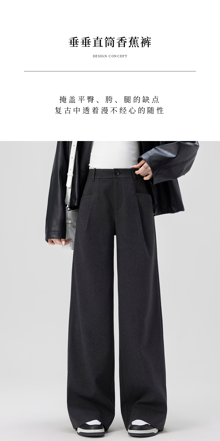 【专属特价】熙世界高腰磨毛阔腿裤秋冬2025新款加厚宽松休闲直筒裤子香蕉裤